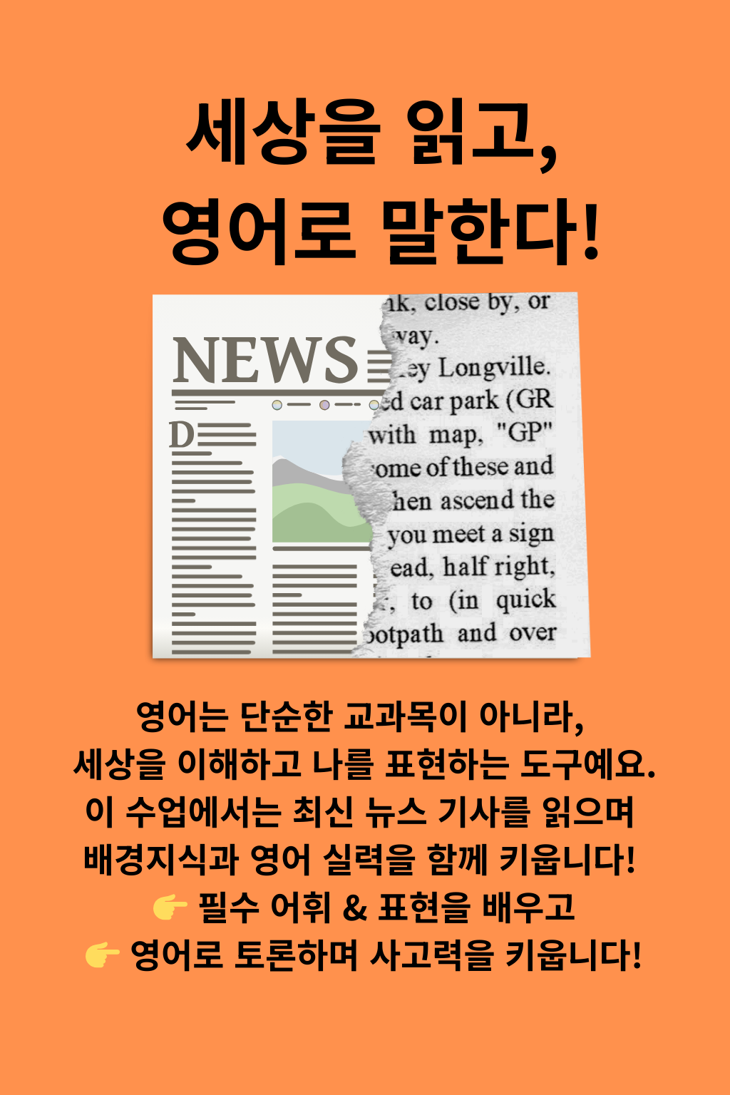 “뉴스로 세상을 읽고, 영어로 내 생각을 말하는 중등 시사 영어 수업입니다.”