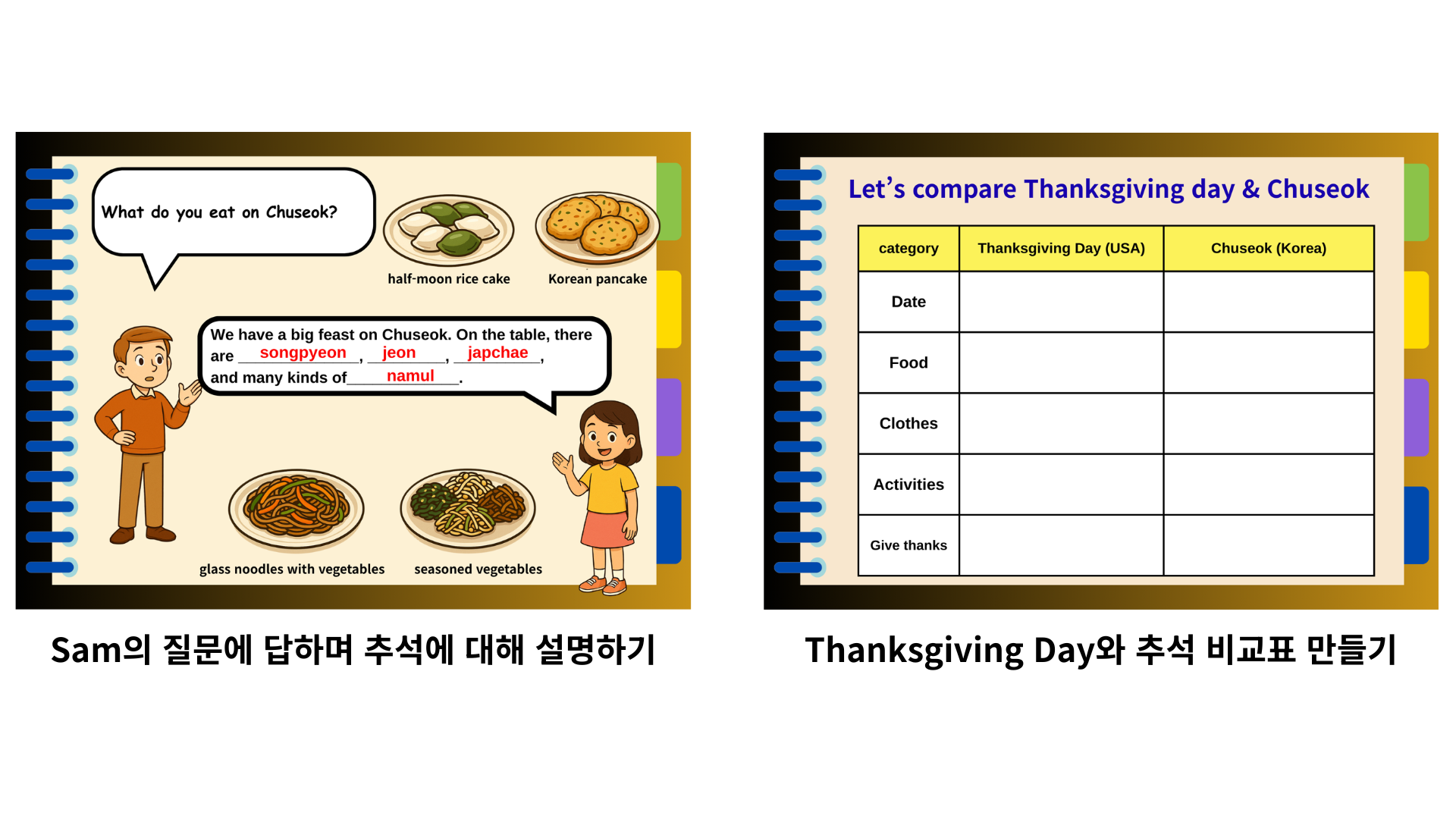 - Thanksgiving과 추석의 공통점·차이점을 이야기하며 표 만들기