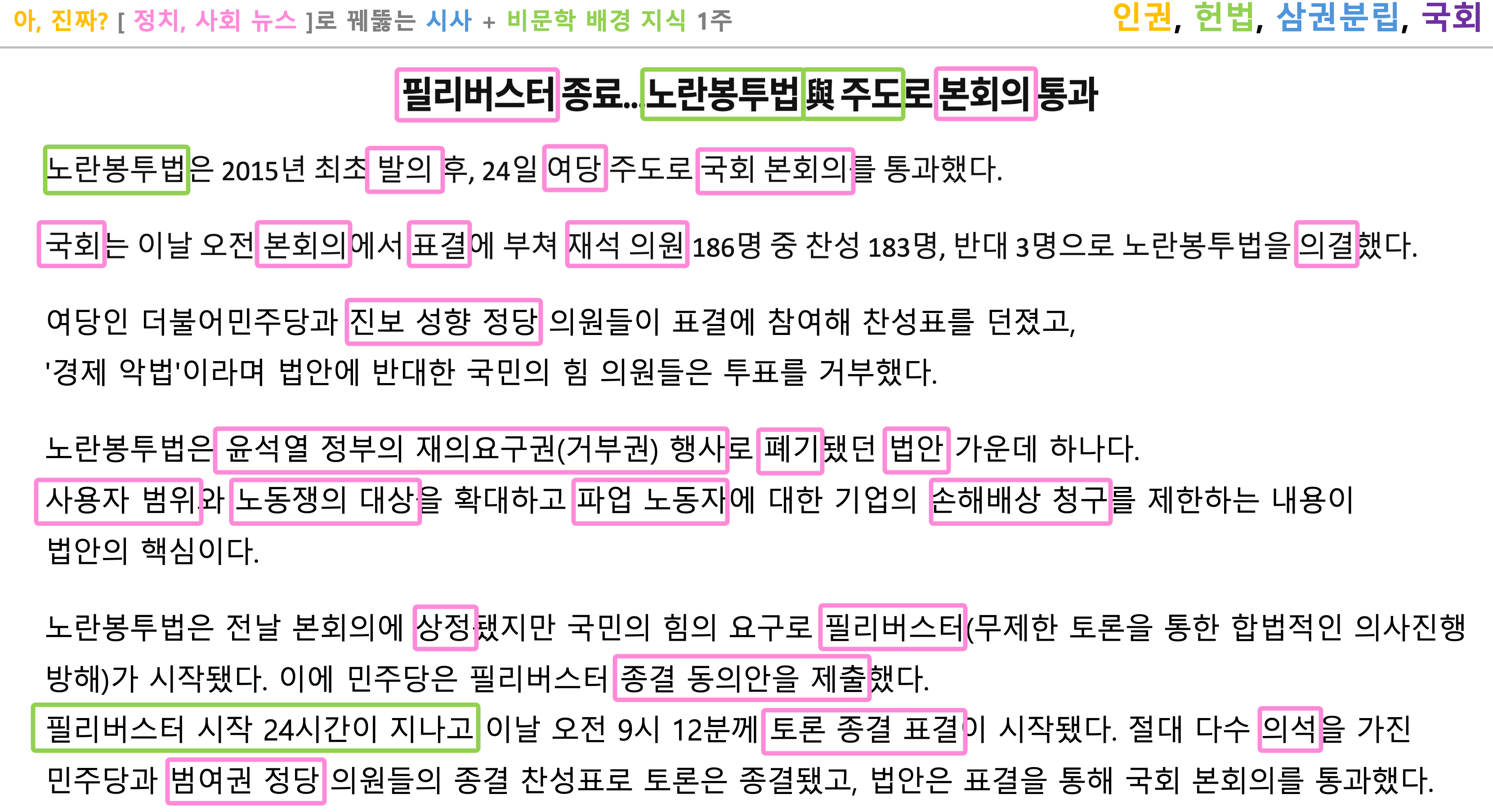 [ 기사 속 정치·사회 용어와 개념을 하나하나 짚어주고, 이를 서로 연결해 설명합니다. ]