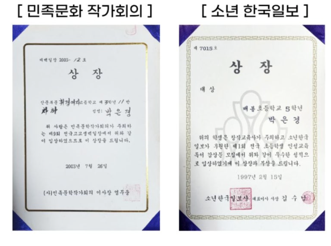 👑 박은경 선생님의 논술, 문학 글쓰기 수상경력