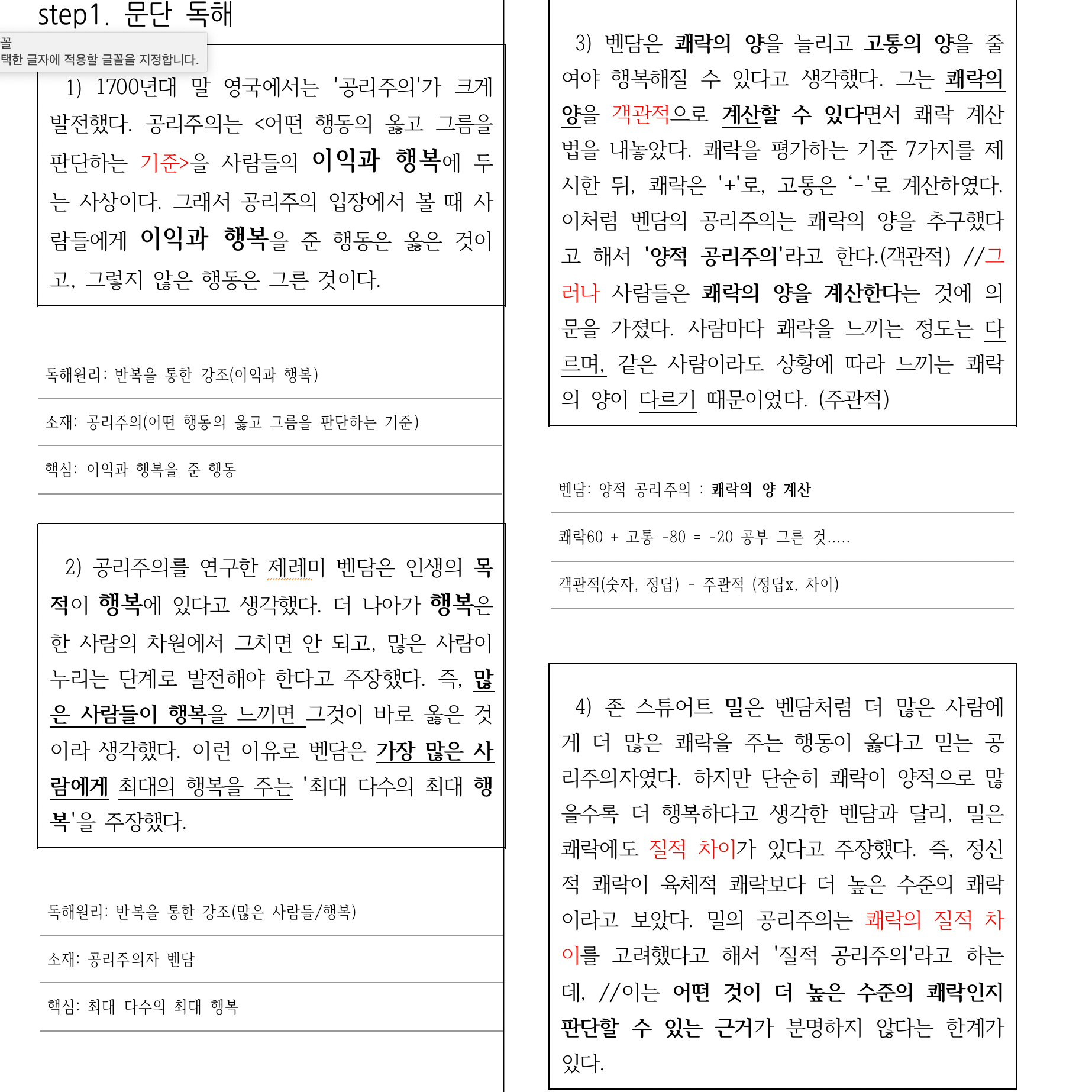 중등 시기에 수능 인문·사회 지문을 직접 다루며 선행