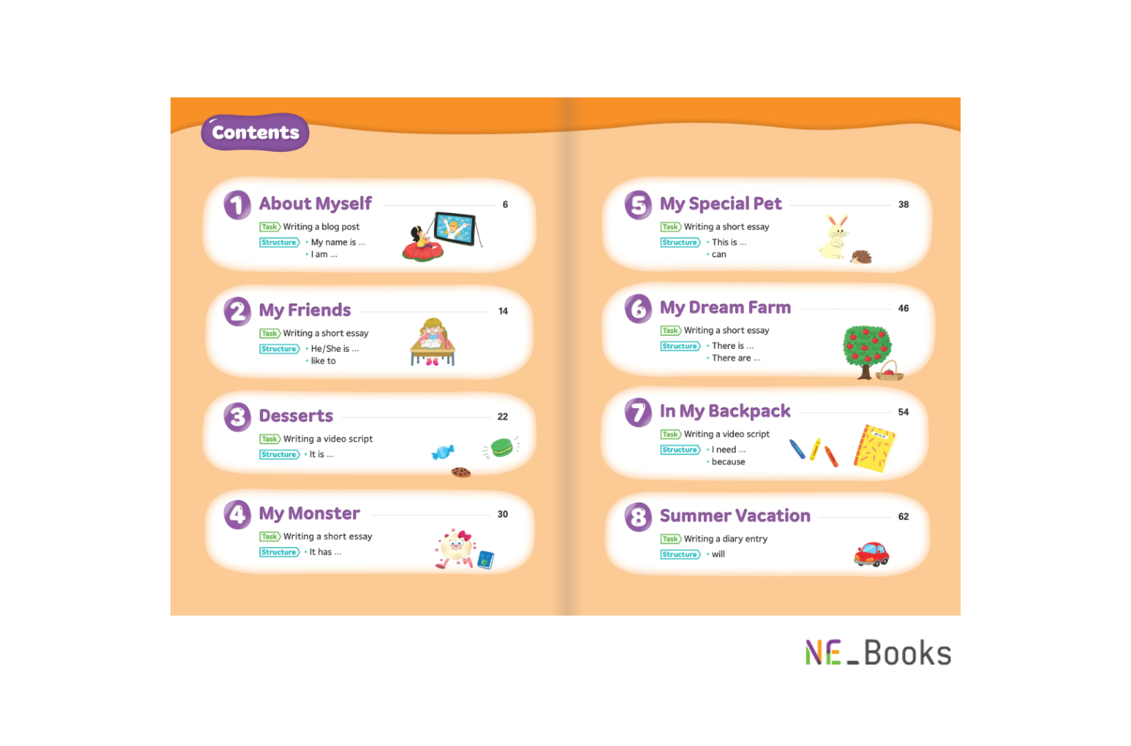 Write It은 아이들이 ‘영어로 글쓰기’를 부담 없이 시작할 수 있도록 돕는 교재입니다. 재미있는 주제와 쉬운 문장 패턴으로 아이 스스로 글을 완성해 볼 수 있고, 매 시간 작은 성취를 느낄 수 있습니다. 꾸준히 학습하면서 자연스럽게 영어 표현력과 자신감이 함께 자랍니다.