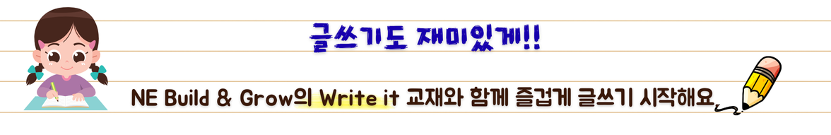 본 수업은 NE Build&Grow의 “Write It Beginner 1” 교재를 중심으로 진행됩니다. 원활한 수업 참여를 위해 교재를 사전에 준비해 주세요.