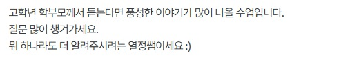 이 수업은 단순한 이론 소개가 아니라, 바로 실생활에서 적용할 수 있는 **구체적인 대화법**에 집중해요. 아이마다 성장 속도가 다르고, 사춘기 반응도 다양하죠. 이 수업은 그런 개별적인 상황까지 함께 고민하고, ‘엄마, 아빠 말이 달라지니까 집 분위기가 달라졌다!’라는 경험을 할 수 있게 도와드릴 거예요. 누구나 실패와 시행착오를 겪지만, 정확한 원인과 바른 방법을 알면 분명히 달라질 수 있어요.