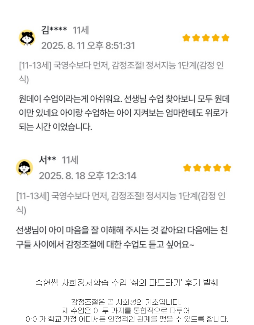 ![[11-13세] 주1회 저녁 30분 마음 트레이닝! 감정조절부터 사회성까지 한번에 잡기](https://i1.gguge.com/r/teacher/99e3a3cf-8164-47f9-bfa9-18f72054447a.png.webp?w=1280)