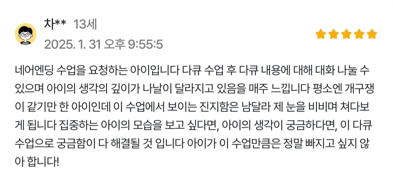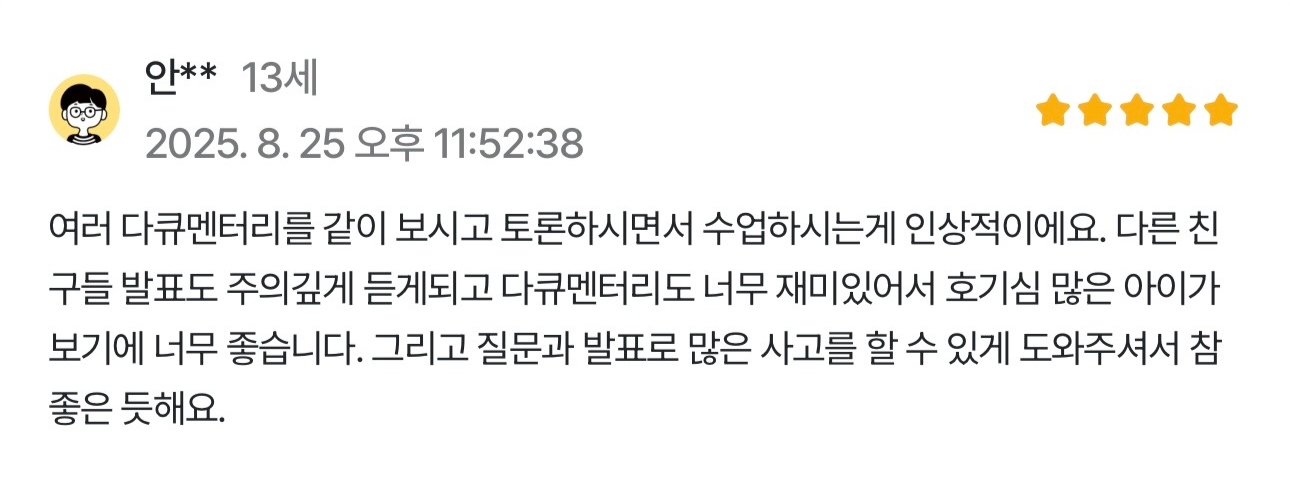 ![[중등] 명작 다큐 꾸준히 보면 논술 실력이 쑥! 사고력까지 잡는 훈련반](https://i1.gguge.com/r/teacher/bf312e9b-b871-4bad-8d8e-ddf04f08a9f4.png.webp?w=1280)