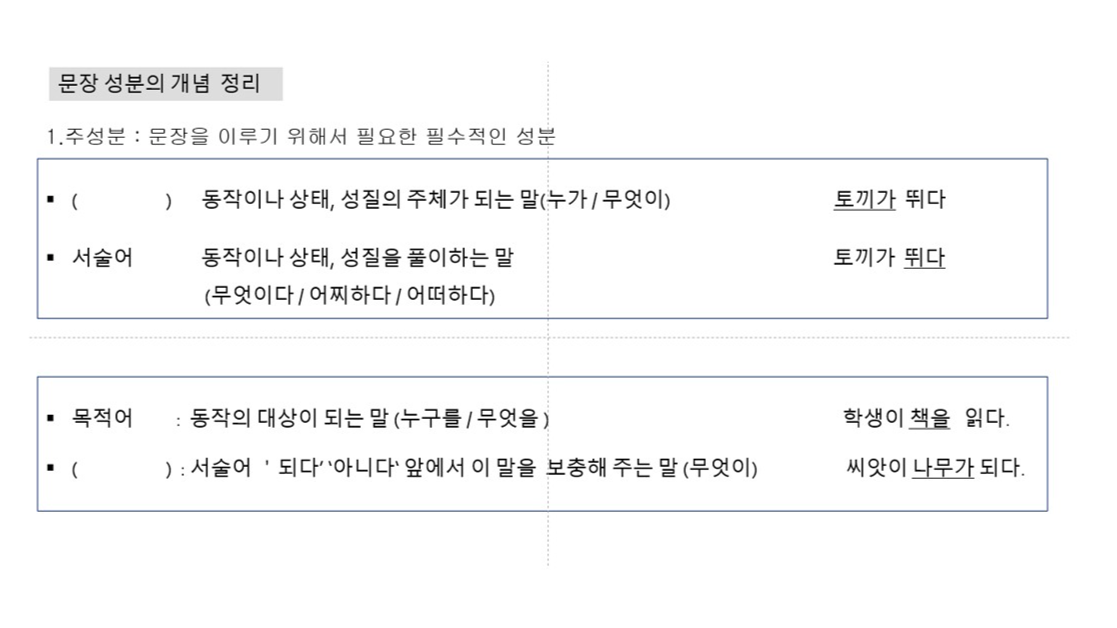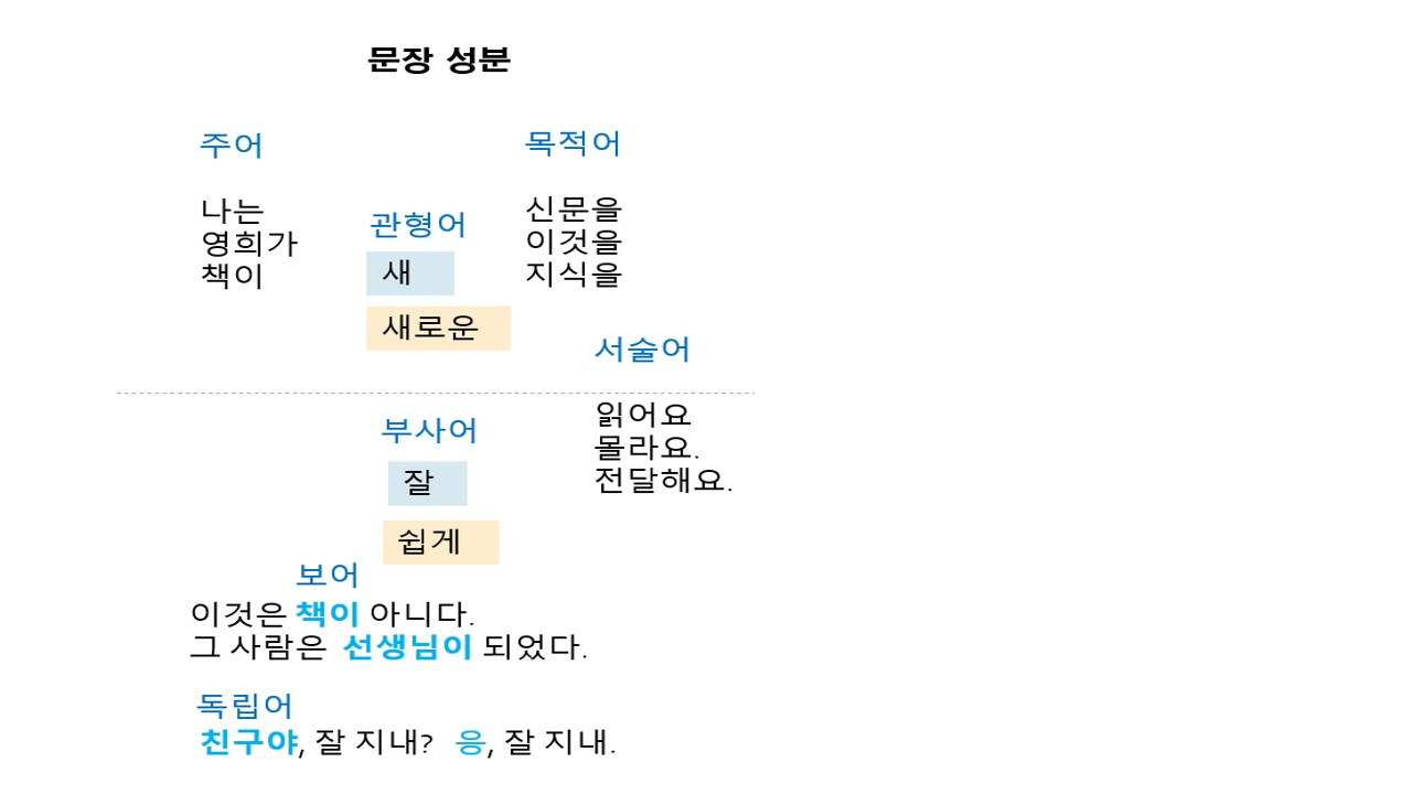 -각 단어의 품사와 문장 안에서의 역할을 살펴 보고 문장 성분과 품사의
