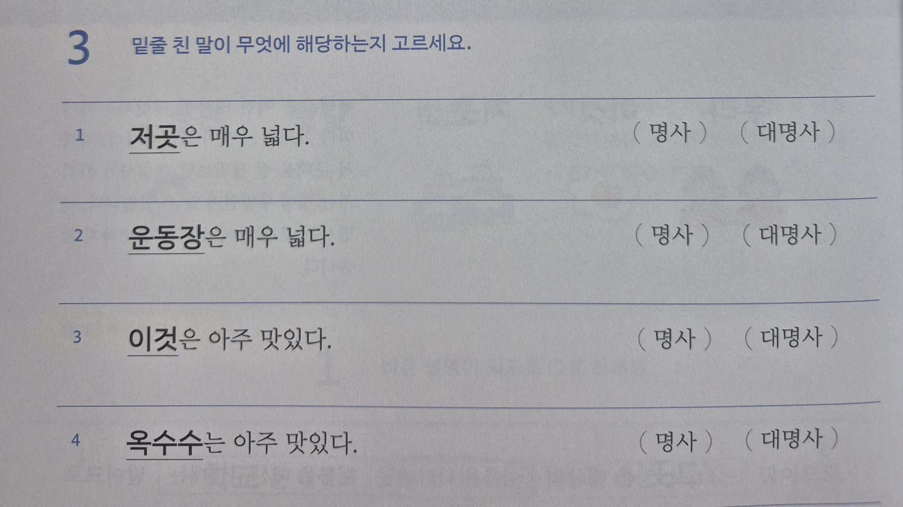 각 단어의 품사를 말해 보아요.