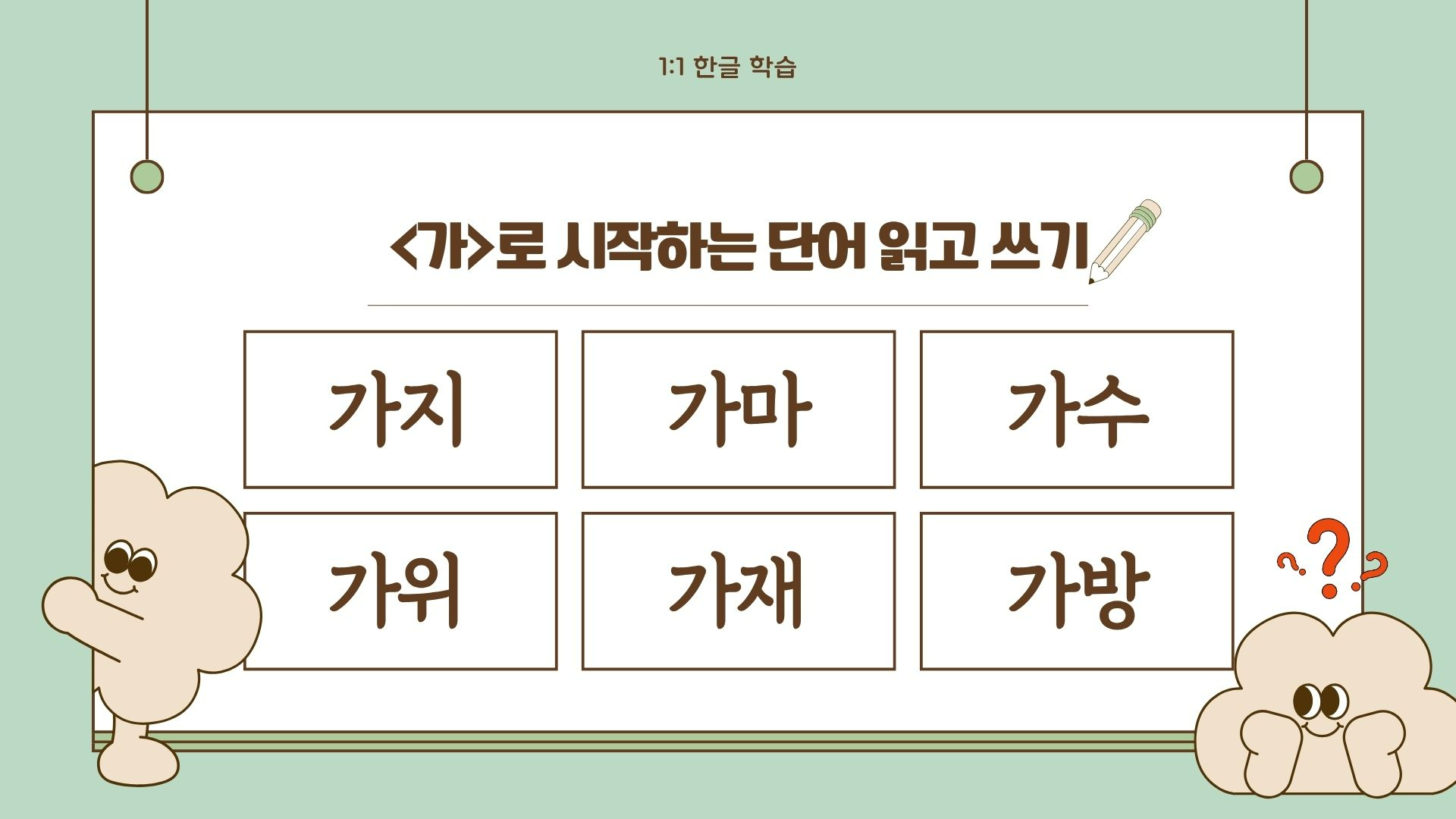 낱글자 소리 듣기와 읽기, 쓰기 연습 (10분)