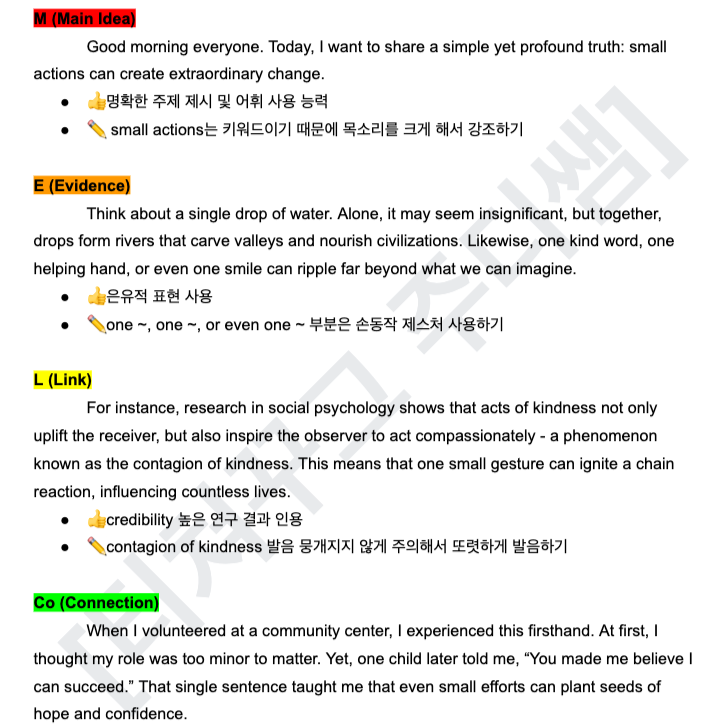 영어로 말하는 건 연습이 정말 중요해요. '나도 할 수 있다'는 자신감부터, 이제 영어 스피치의 즐거움을 경험해보세요!