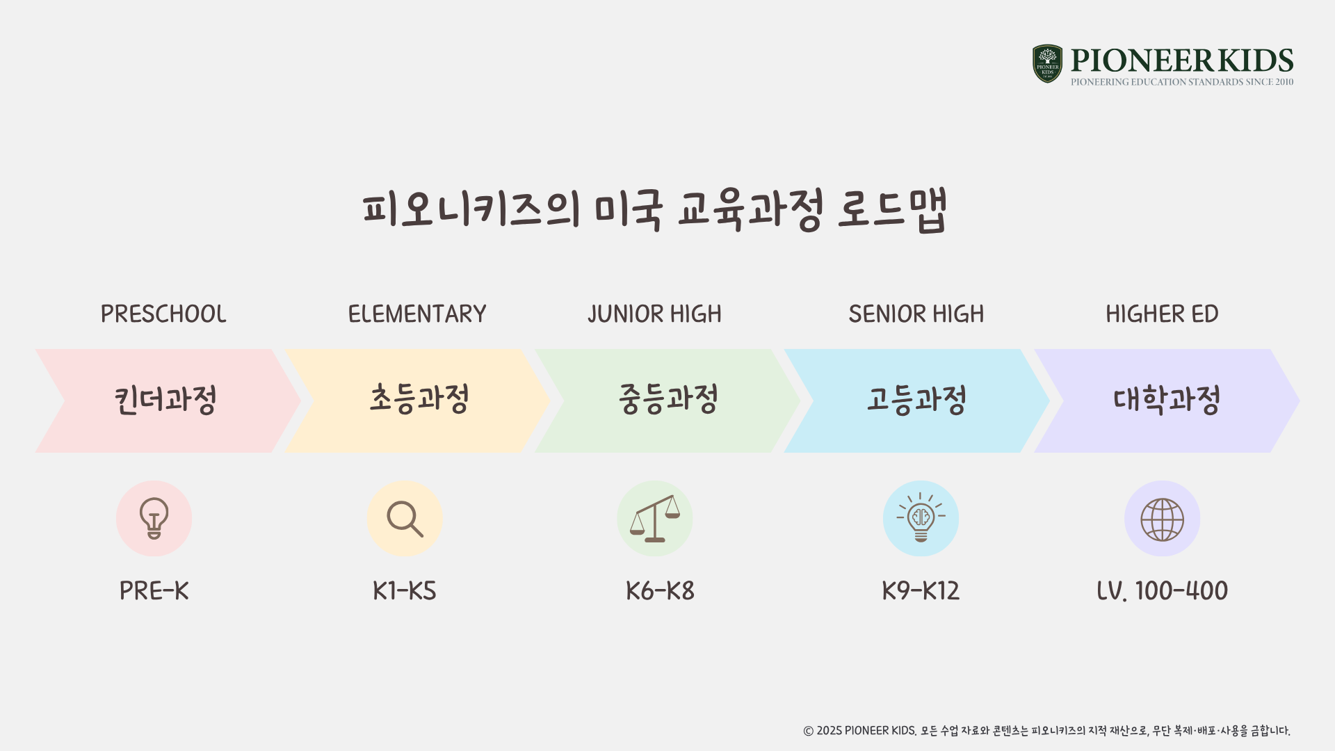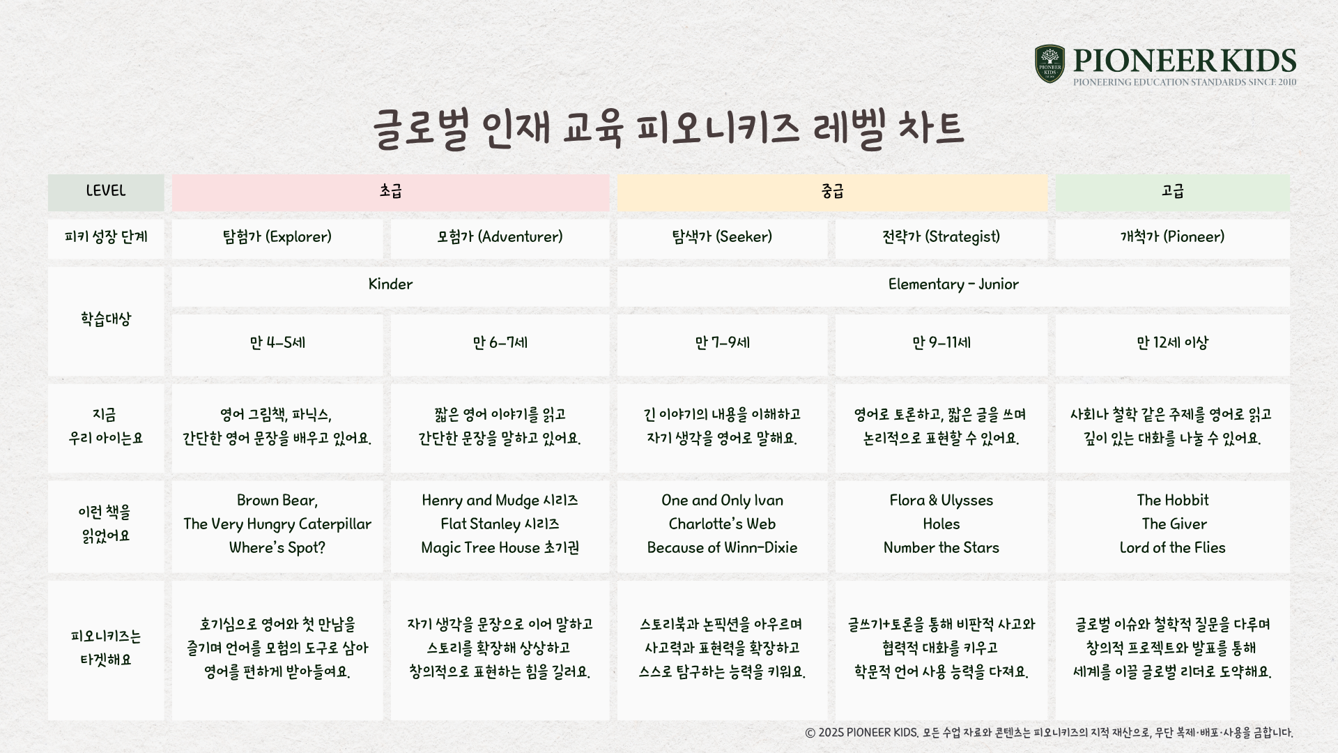 피오니키즈의 차별화된 커리큘럼 레벨차트와