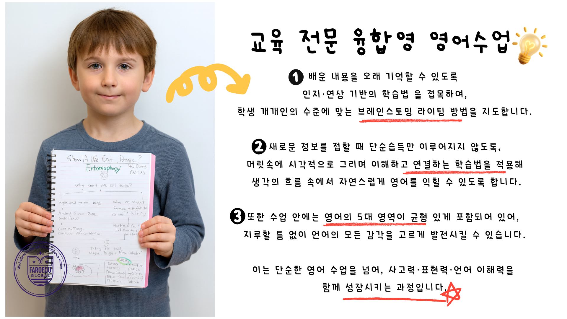 단순한 영어 수업이 아닌, 언어와 사고가 함께 성장하는 수업을 만듭니다.