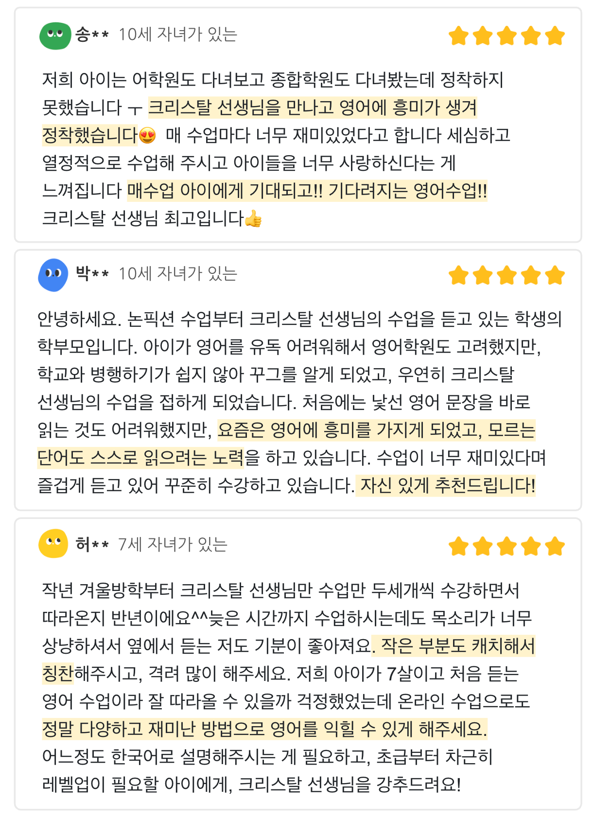 ⭐️ 학부모님께서 진심을 담아 추천하시는 전문성+사랑이 가득 담긴 수업❤️