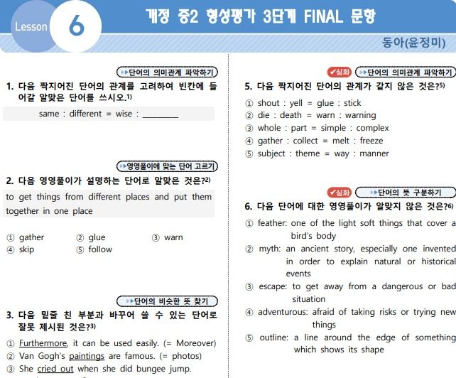 [기말고사대비] 중2 <동아 윤정미> 7,8과 파이널