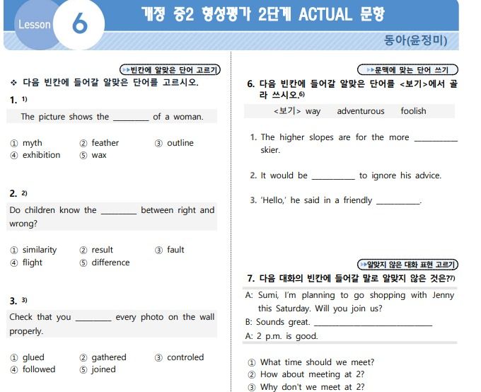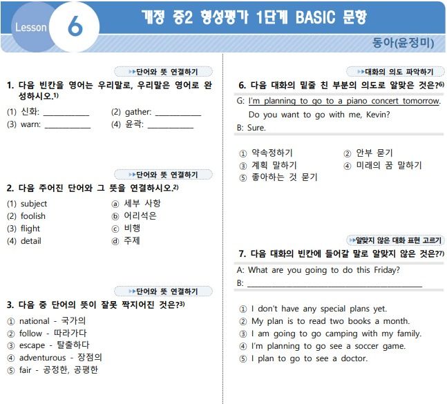 이 수업은 시험전에 마지막으로 문제를 보고 시험 대비하는 수업입니다!.수업은 동아 윤정미 책으로 진행되는 수업입니다.