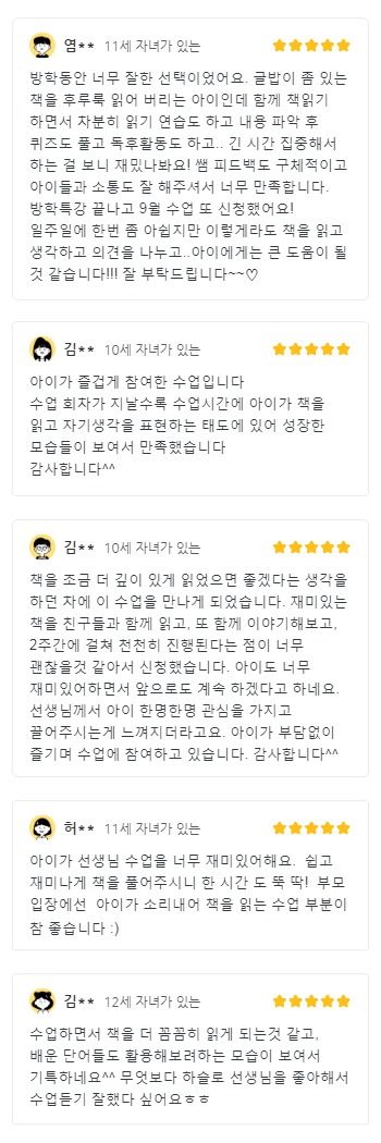 안녕하세요 :) 유대인의 밥상머리교육으로 유명한 하브루타를 대한민국의 정서에 맞게 초중등 학생부터 부모님까지 지도하고 있는 하슬로 선생님 입니다. 딸아이의 육아를 위해 접하게 된 하브루타에 빠져 직접 교재를 개발하여 교육을 한 지 10년째가 되었어요! 제가 어렸을 때는 스마트폰이 없던 시절이라 밖에서 뛰어놀거나, 집에서 책을 보며 놀았답니다. 그때의 추억으로 무조건 책이 좋았던 저는 독서로 성장하여, 북코칭 선생님이 되었네요 :) 그리고 초등독서는 무조건 재미있어야 한다고 생각하기 때문에, 슬로리딩 프로그램도 만들었고요! 하브루타 독서토론논술 하슬로 교육이 추구하는 5가지 핵심가치를 소개해드립니다. _ 함께 읽고, 정확하게 이해하는 힘 _ 호기심으로 질문을 만드는 힘 _ 내가 아는 것을 타인에게 설명하는 힘 _ 생각을 확장하여 탐구하는 힘 _ 나만의 방식으로 문제를 해결하는 힘 우리 꾸그 친구들에게 책과의 좋은 추억으로 책 속에서 지혜를 찾아가는 어른으로 성장하는데 기여할 수 있는 선생님이 되겠습니다 ^^