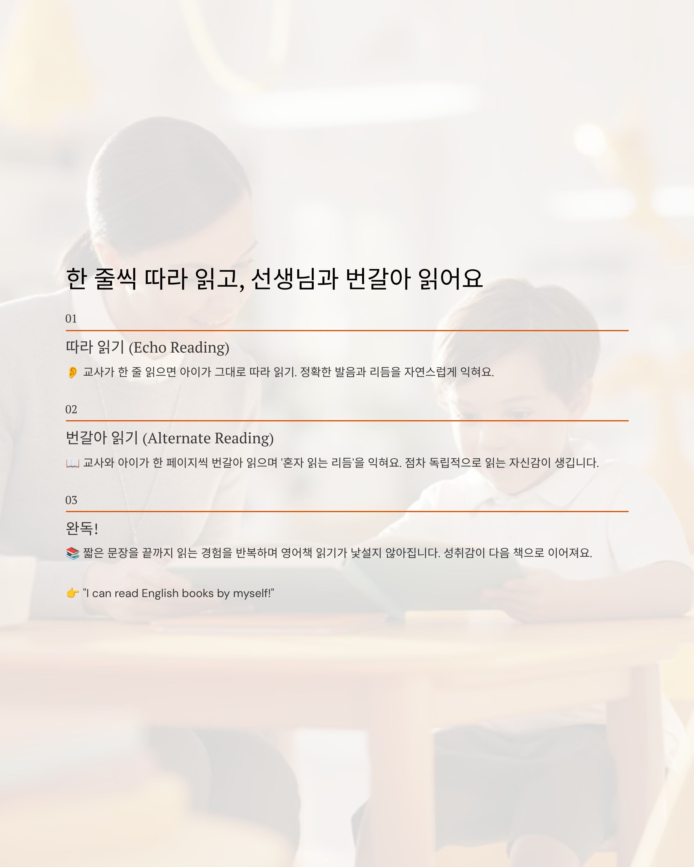 교사가 문장을 먼저 읽고, 아이가 바로 따라 읽습니다.