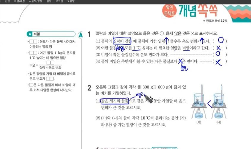 중등 2학년 6단원 '물질의 특성_혼합물의 분리', 7단원'수권과 해수', 8단원 '열과 우리생활''의 핵심 개념과 서술형 문제를 한 번에 정리하고 기말고사를 완벽 대비하는 원데이 특강