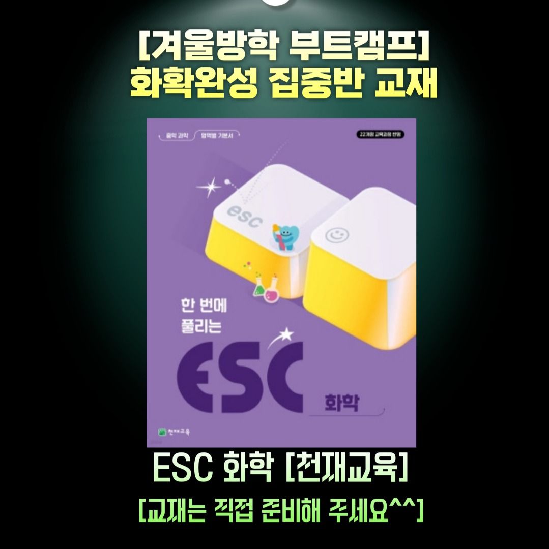 교재: ESC 화학 (천재교육) + 강사 개념 노트 제공(수업 전 자료실에서 다운로드 가능)