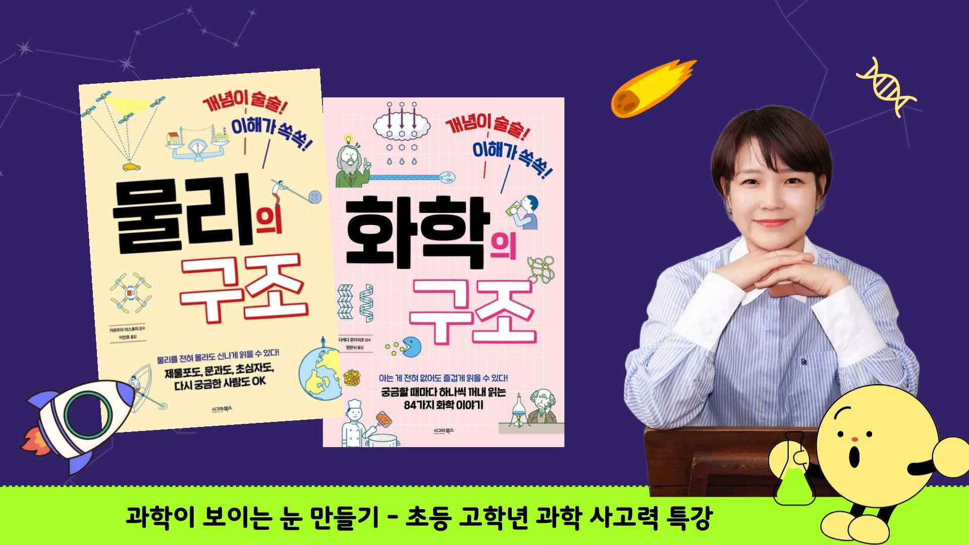 ✔ 물리·화학을 한 번에 이해시키는 눈높이 설명 복잡한 개념도 초등 고학년이 이해할 수 있도록 쉽고 단단하게 구조화해서 전달하는 설명력이 강점입니다.