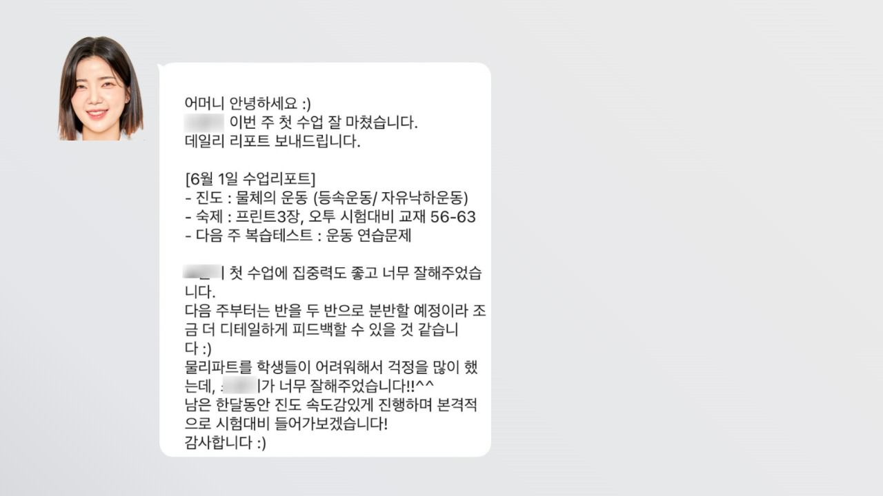 ✴️ 대치동과학 유이T만의 데일리 리포트 전달