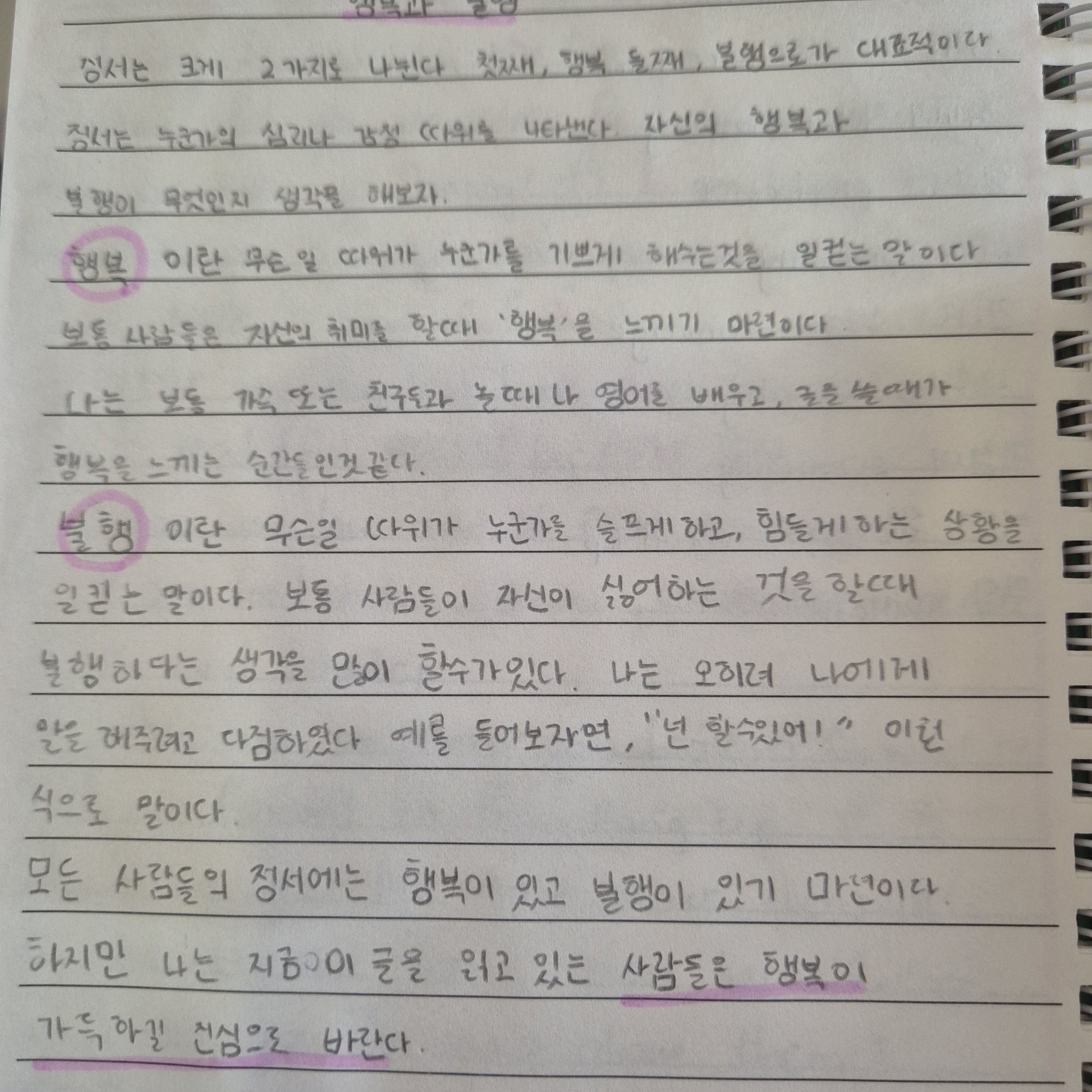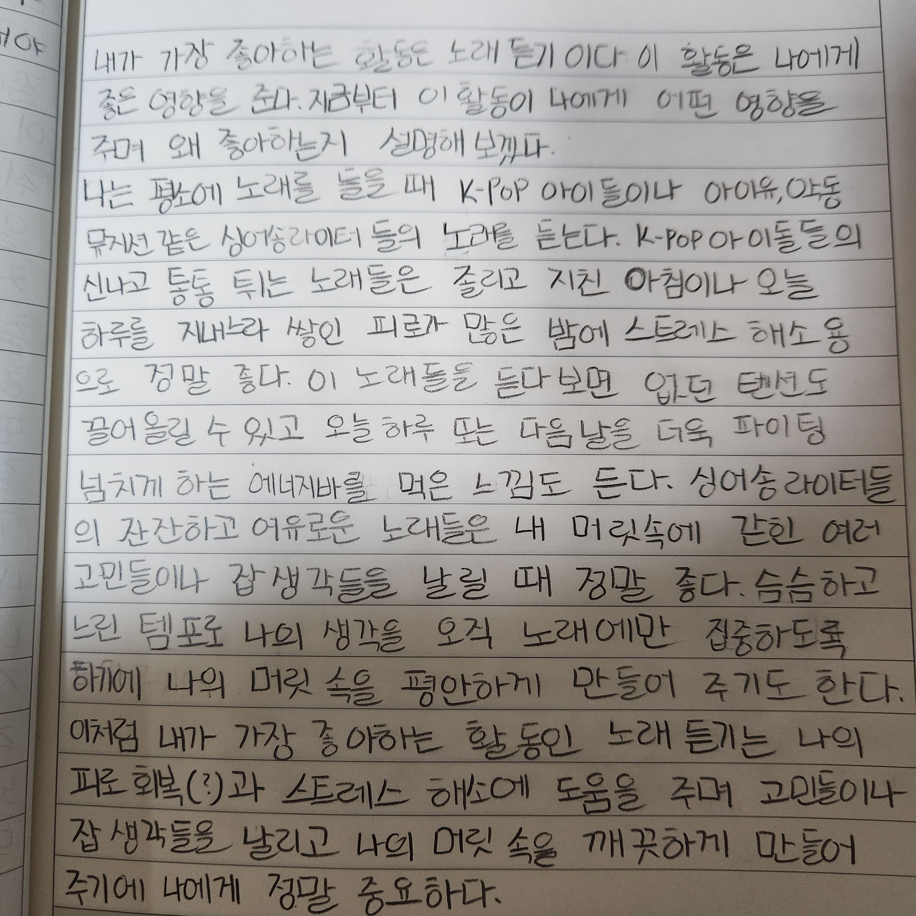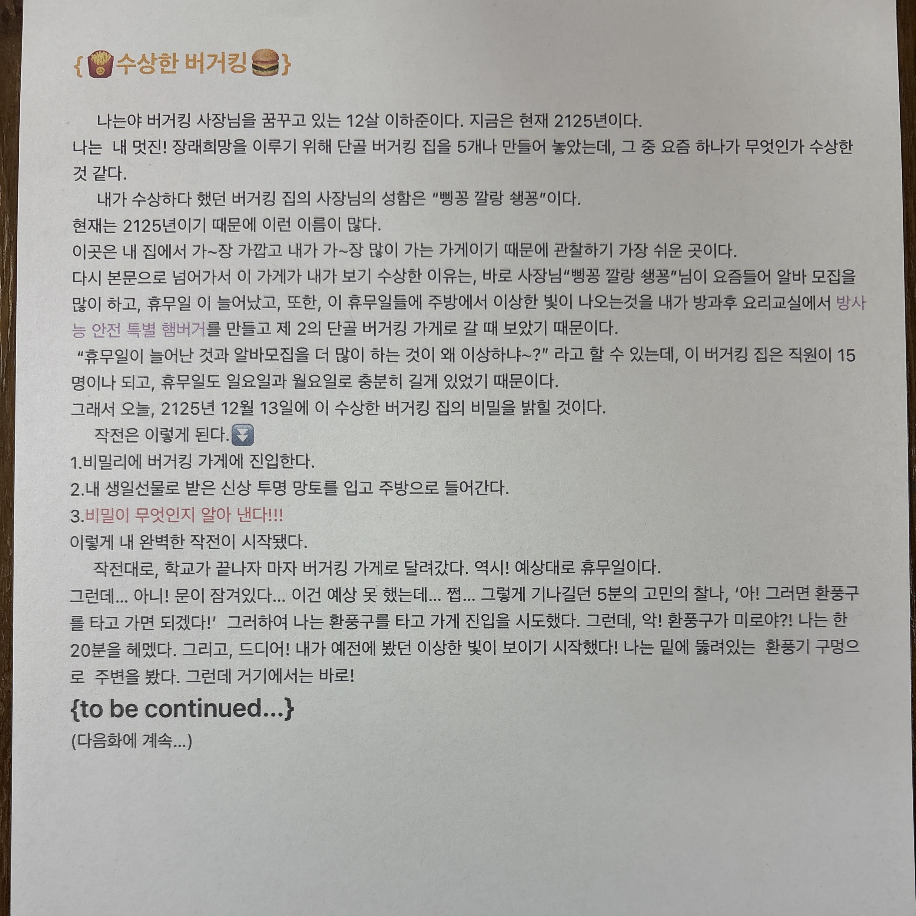 읽고 → 이해하고 → 표현하는 전 과정을 훈련하는 수업입니다.*아래 예시는 아이들이 수업 시간에 지문을 읽고 이해한 뒤, ‘표현하기’ 단계에서 직접 작성한 글입니다.
