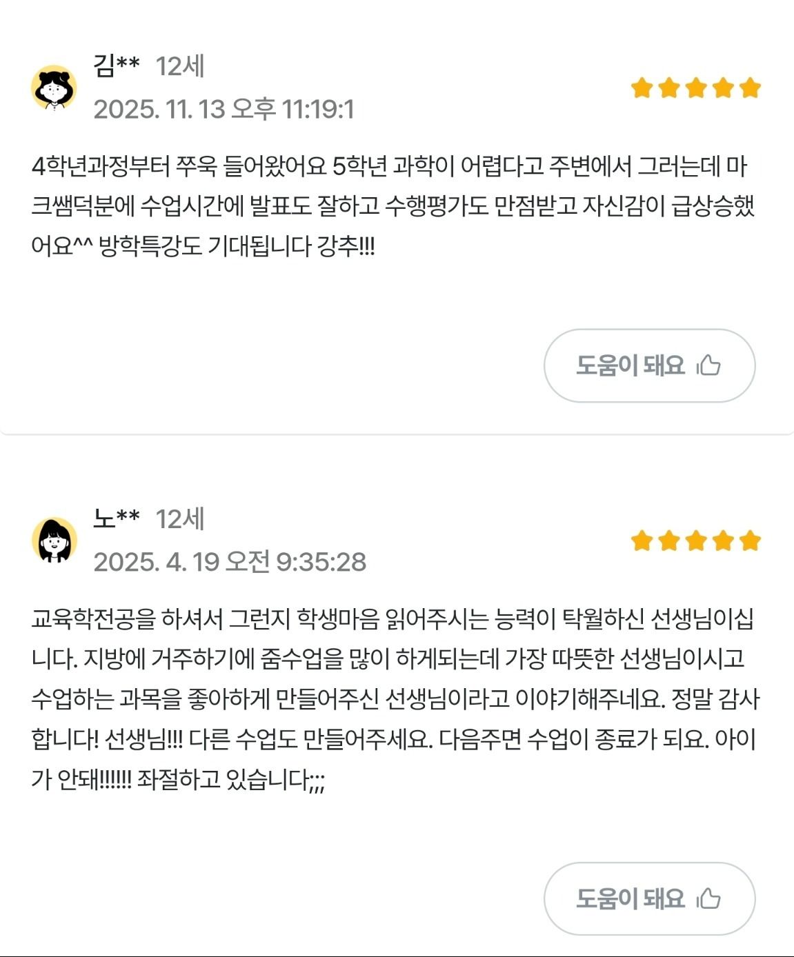 선생님 정보 더보기