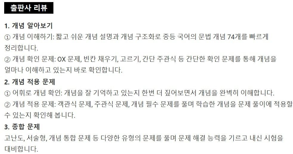 중학교 입학 전 국어문법 개념을 미리 잡고 싶은 학생