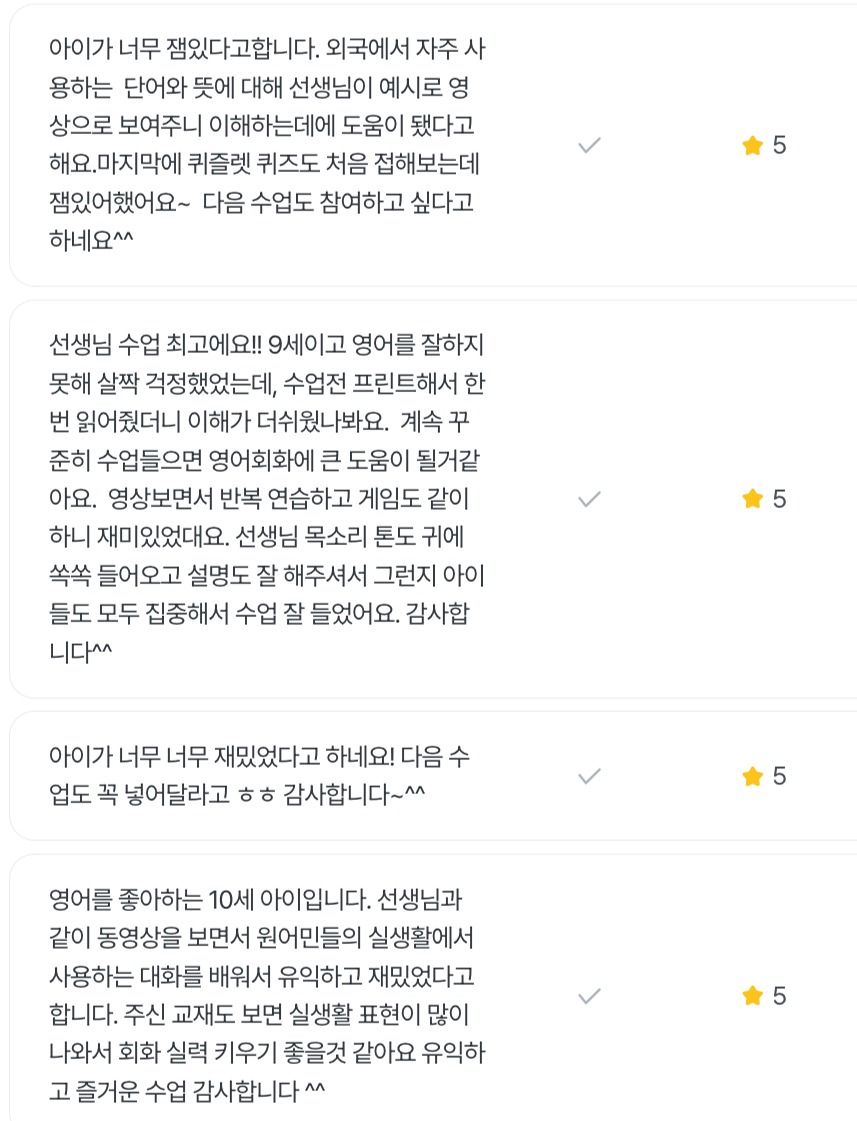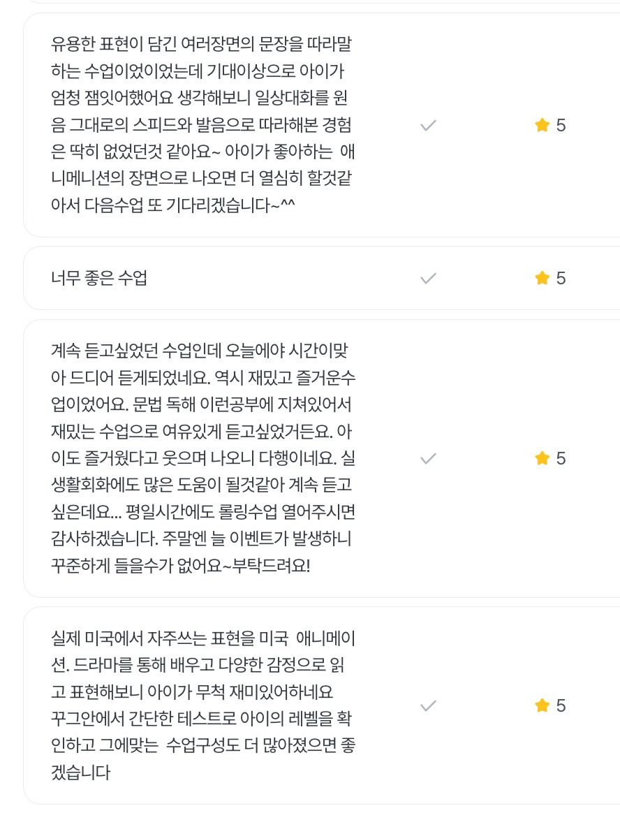 *티파니 선생님의 과거 영어스피킹 수업에서 발췌한 수업 후기 입니다,