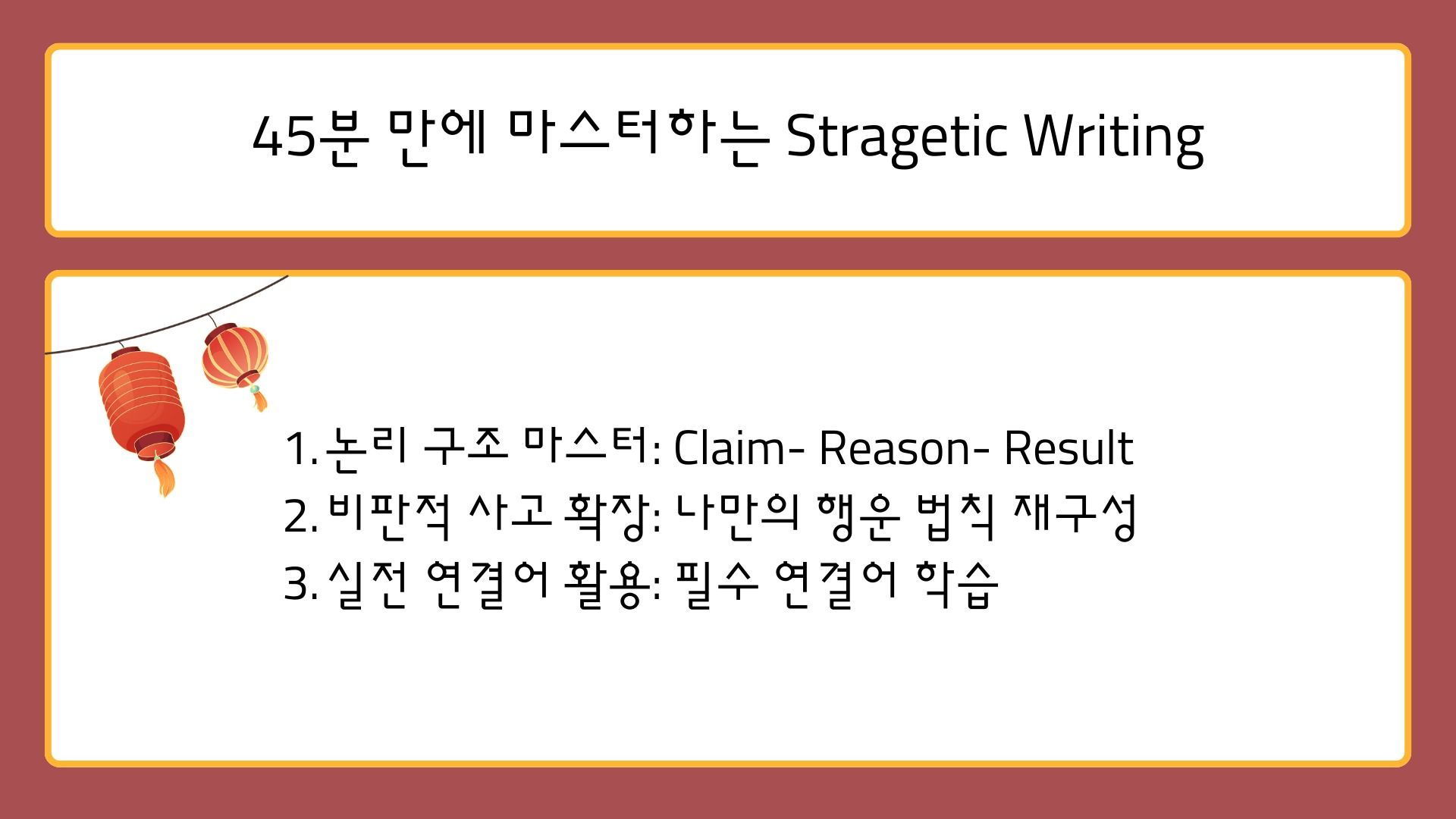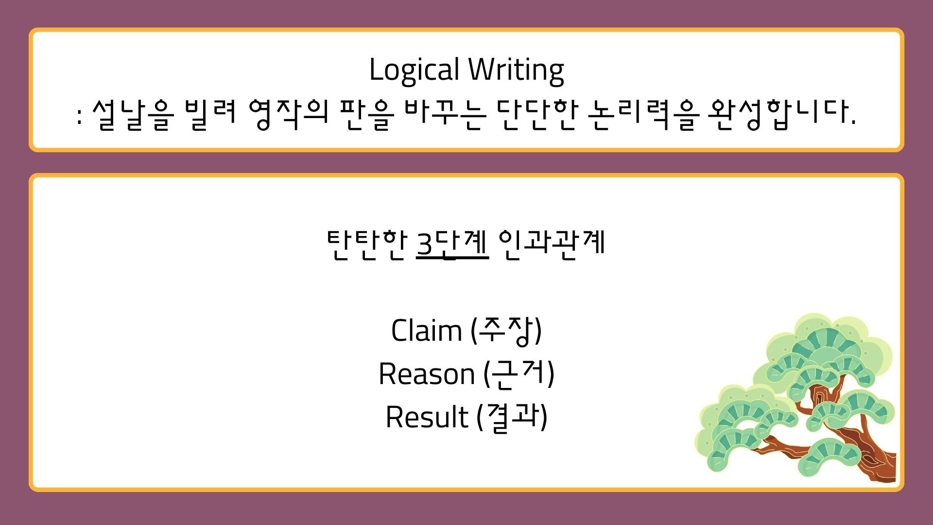논리 구조 마스터: 영어 설득문의 공식인 3단계 구조(Claim-Reason-Result) 학습.