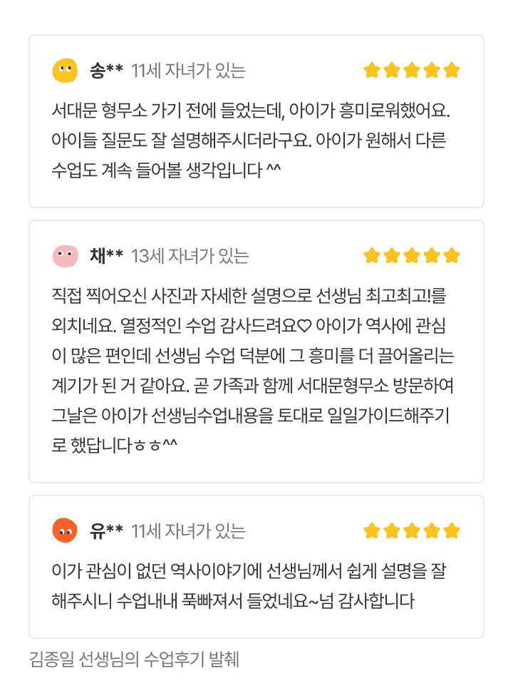 부모님과 아이가 한결같이 이야기하는 종일쌤의 후기!