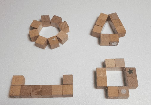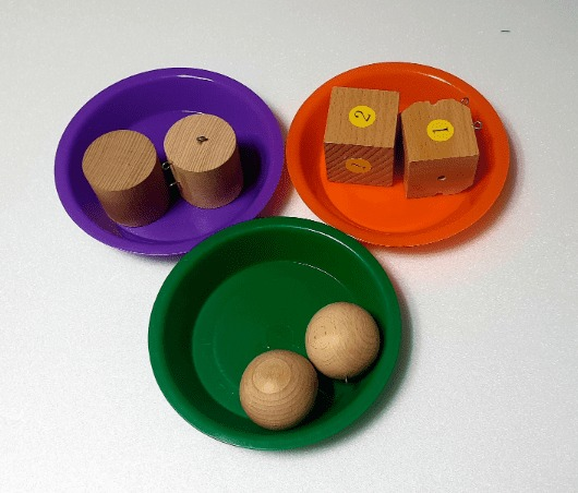 2가베 - 나무로 만들어진 구, 원기둥, 정육면체로 구성