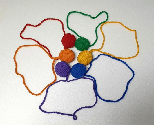 🔎 6가지 색의 실로 만들어진 끈 있는 공,