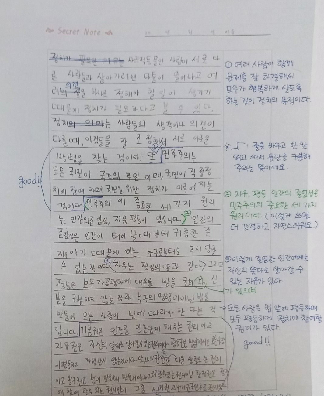 Secret Note에 요약해 서술해요.