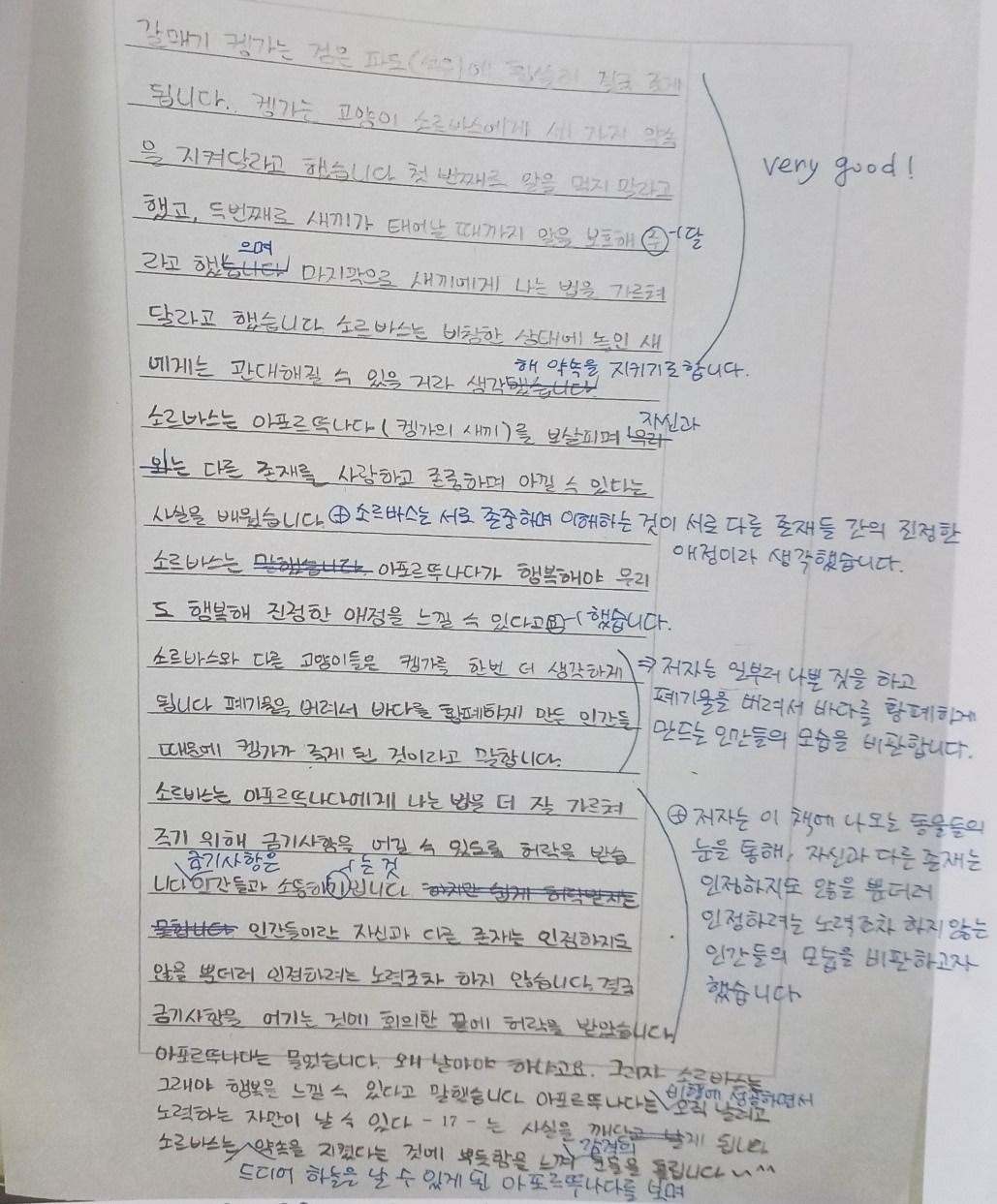 글을 분석한 것을 토대로 한 편의 요약문을 작성해 보아요. 선생님의 첨삭 결과도 확인해 주세요.