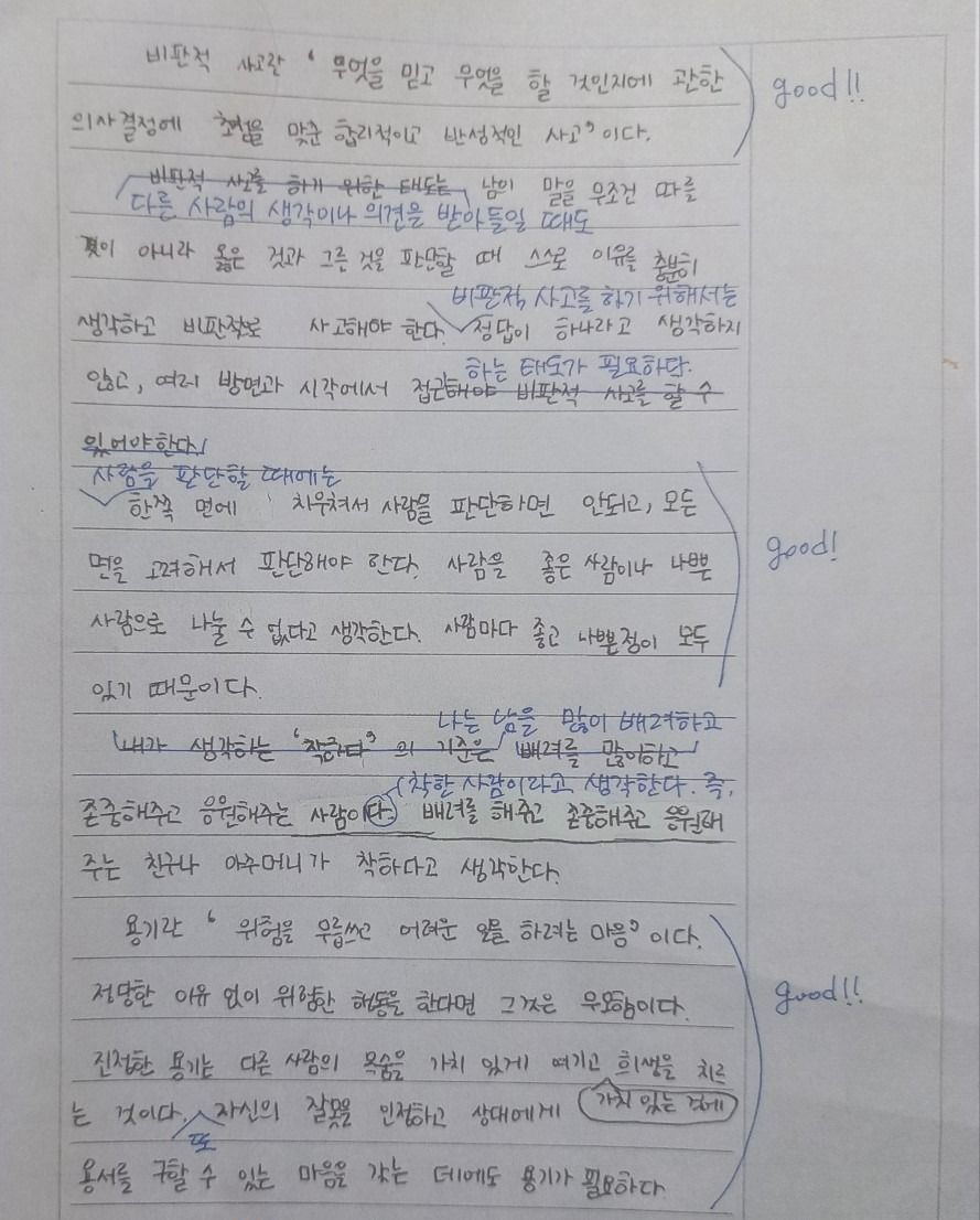 자기만의 생각과 언어로 정리해 말과 글로 표현하는 훈련을 하고 싶은 친구