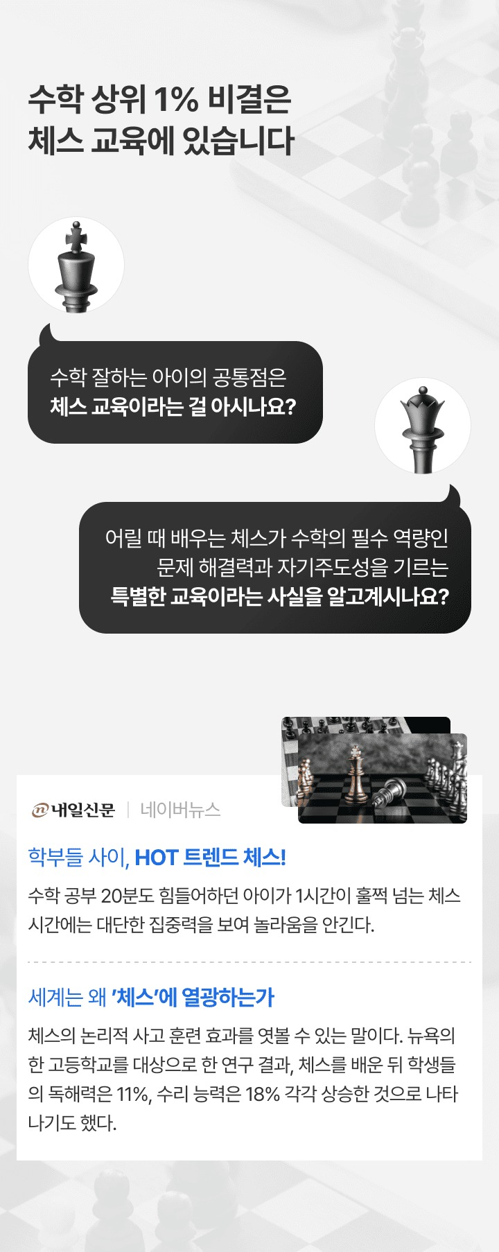 체스로 논리력, 수학적 사고력, 공간 지각력을 한 번에 키울 친구