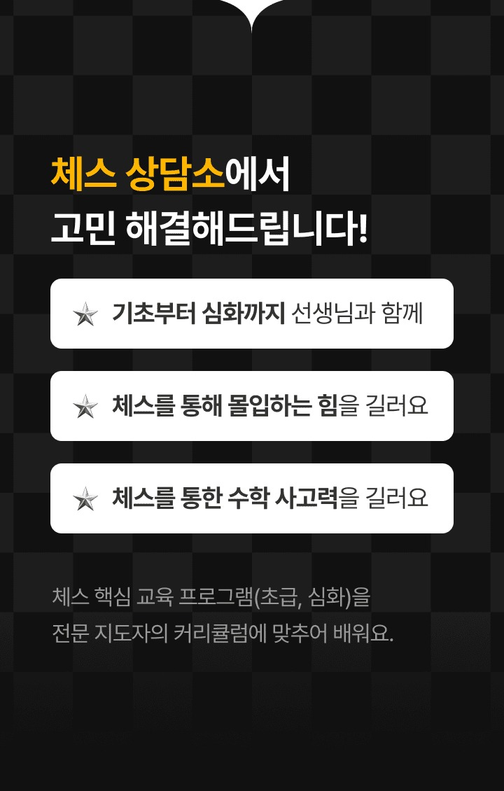 체스의 기초부터 심화까지 학습해 대회반까지 도전하고 싶은 친구