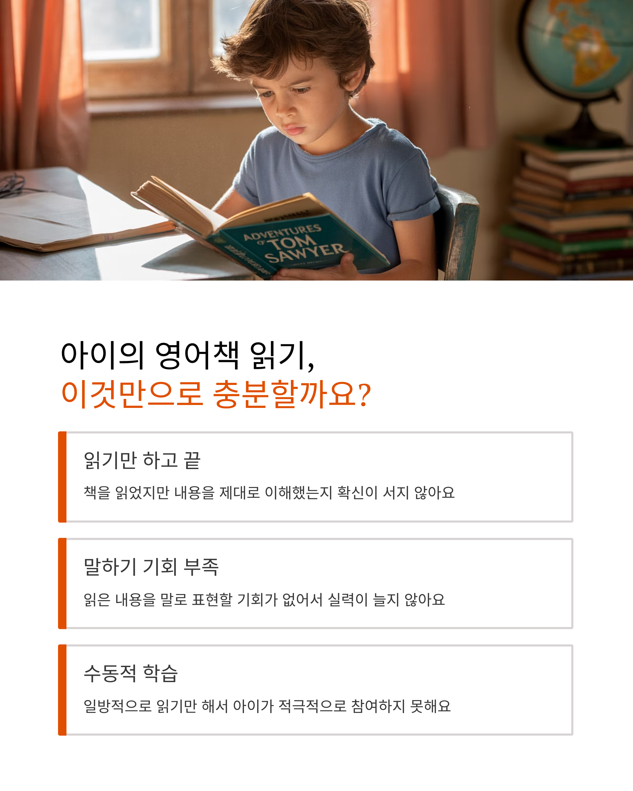 “읽고 끝내는 수업이 아니라, 읽은 내용을 말로 표현하는 힘까지 기릅니다.”