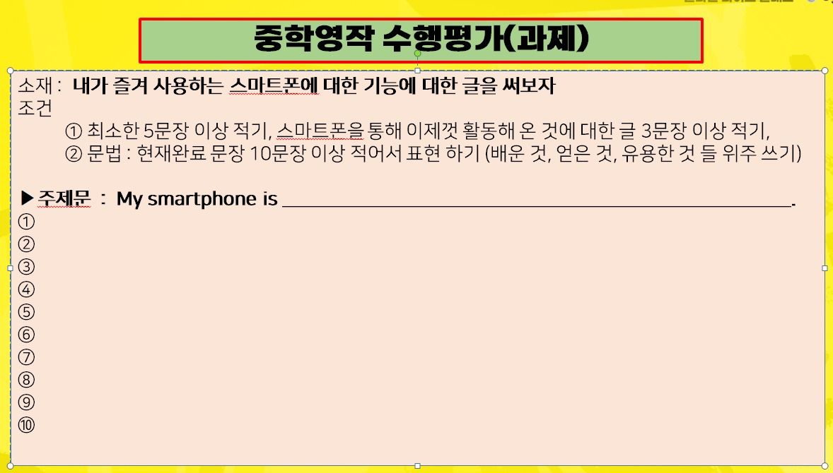 마지막에는 <스마트폰>에 대한 소재로 다양한 문법과 현재완료 문장을 같이 쓰고 첨삭 수정을 받아볼 수 있어요