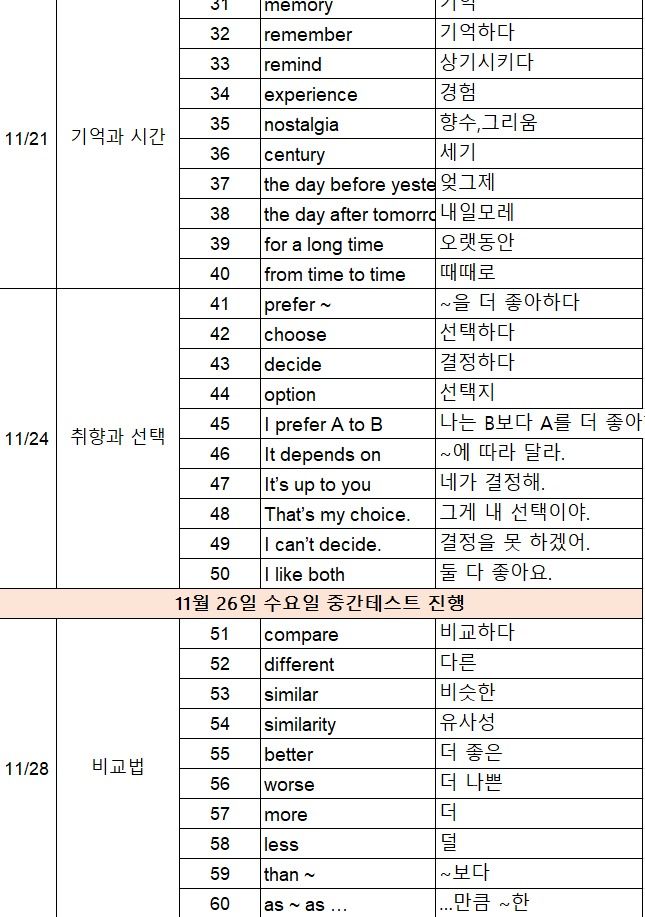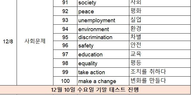 11/26일(수), 12/10(수)에는 단어테스트를 진행합니다!