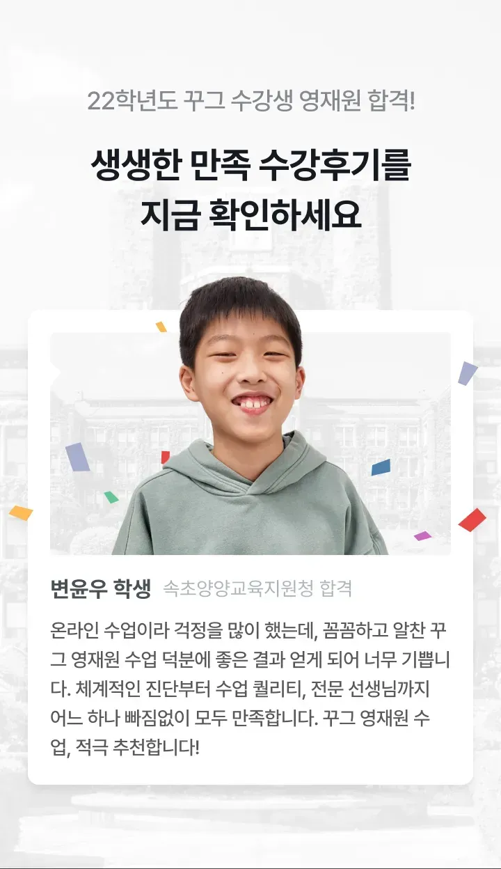 장학금 이벤트 통과자는 장학금 수령 신청 마감일로부터 30일 이내에 발표됩니다. 장학금은 이벤트 당첨 발표와 동시에 지급됩니다. 장학금은 꾸그머니 혜택 금액으로 지급되며, 충전 금액보다 선행되어 사용됩니다. 지급된 장학금은 현금으로 환불하실 수 없으며 수업 신청 시에만 사용하실 수 있습니다. 본 합격 인증 내용은 꾸그의 마케팅 이벤트에 활용될 수 있습니다.