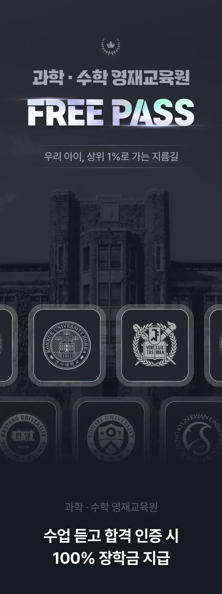 대상 시험 : GED(영재교육종합데이터베이스) 영재선발 공고에 올라온 수학·과학 영역 한정 영재교육기관의 2024학년도 입학 시험. (*수학·과학 이외의 과목은 이벤트 대상에 해당하지 않습니다.) 대상 시험 이외 회차를 응시 및 합격한 경우, 이벤트 대상자에서 제외됩니다. 원서접수, 추가접수, 합격자 발표일 등 시험 관련 세부 안내는 관련 접수처 홈페이지에서 확인하실 수 있습니다.