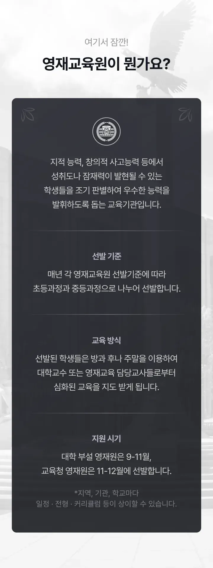 No.1 영재전문가 선생님과 함께 대학부설, 교육지원청 영재교육원 지필평가 시험 완벽하게 대비해요!