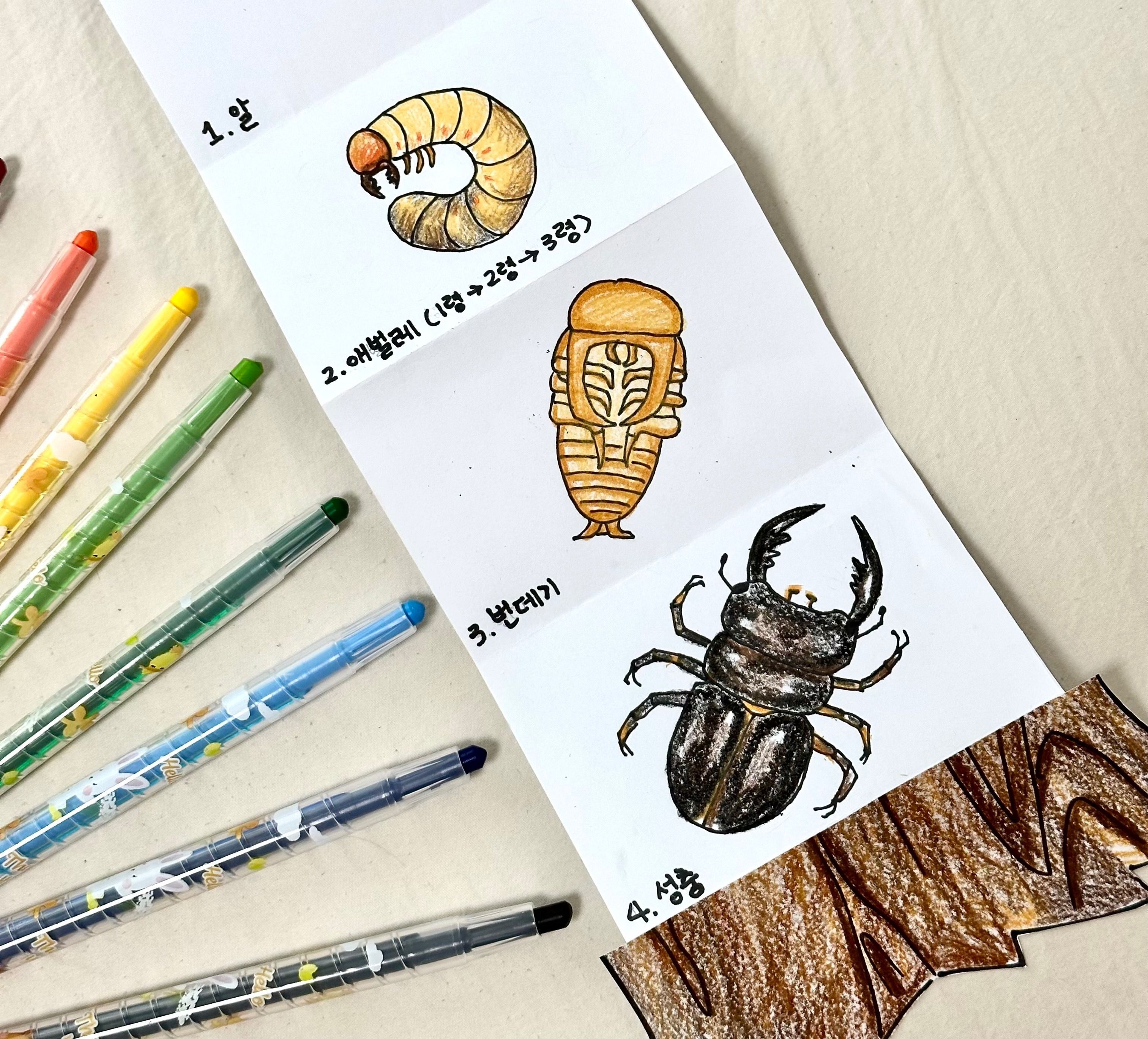 초등 과학수업인 사슴벌레에 일생에 대해 배우고, 사슴벌레의 일생을 그려내보며 나만의 백과사전 Life cycle을 만들어 볼 수 있어요! 복잡한 구조의 사슴벌레를 단계에 맞춰 쉽게 그릴 수 있어요~!
