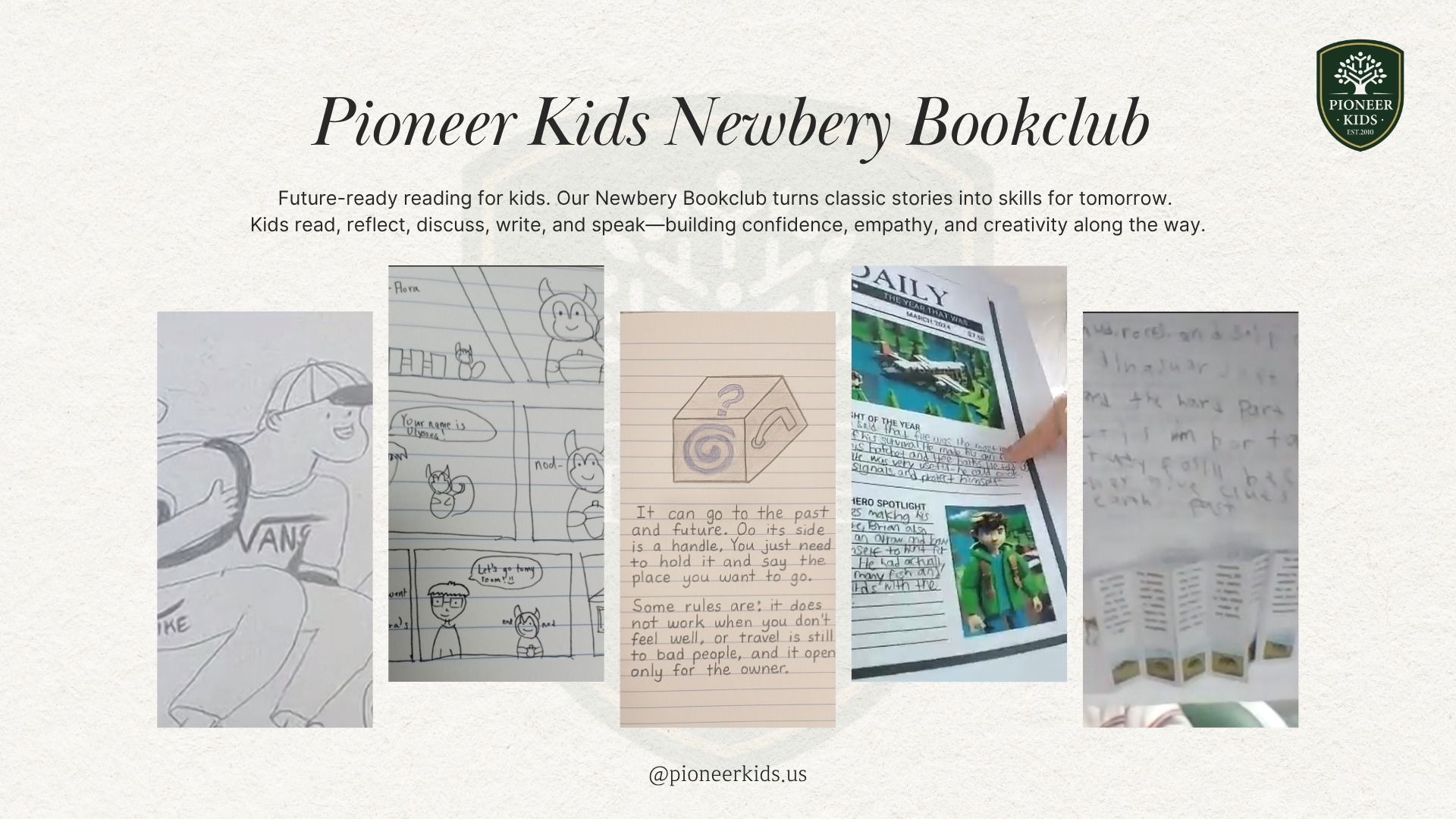 피오니키즈 뉴베리 북클럽은 미국식 참여형 독서 토론 수업으로, 세계적 권위의 뉴베리 수상작을 함께 한 글자씩 꼼꼼히 읽고 완독하며 깊이 이해한 뒤, 북토크·영작·발표로 확장해 영어 독해력과 비판적 사고, 창의적 표현력을 함께 키우는 100% 영어 몰입형 프로그램입니다.