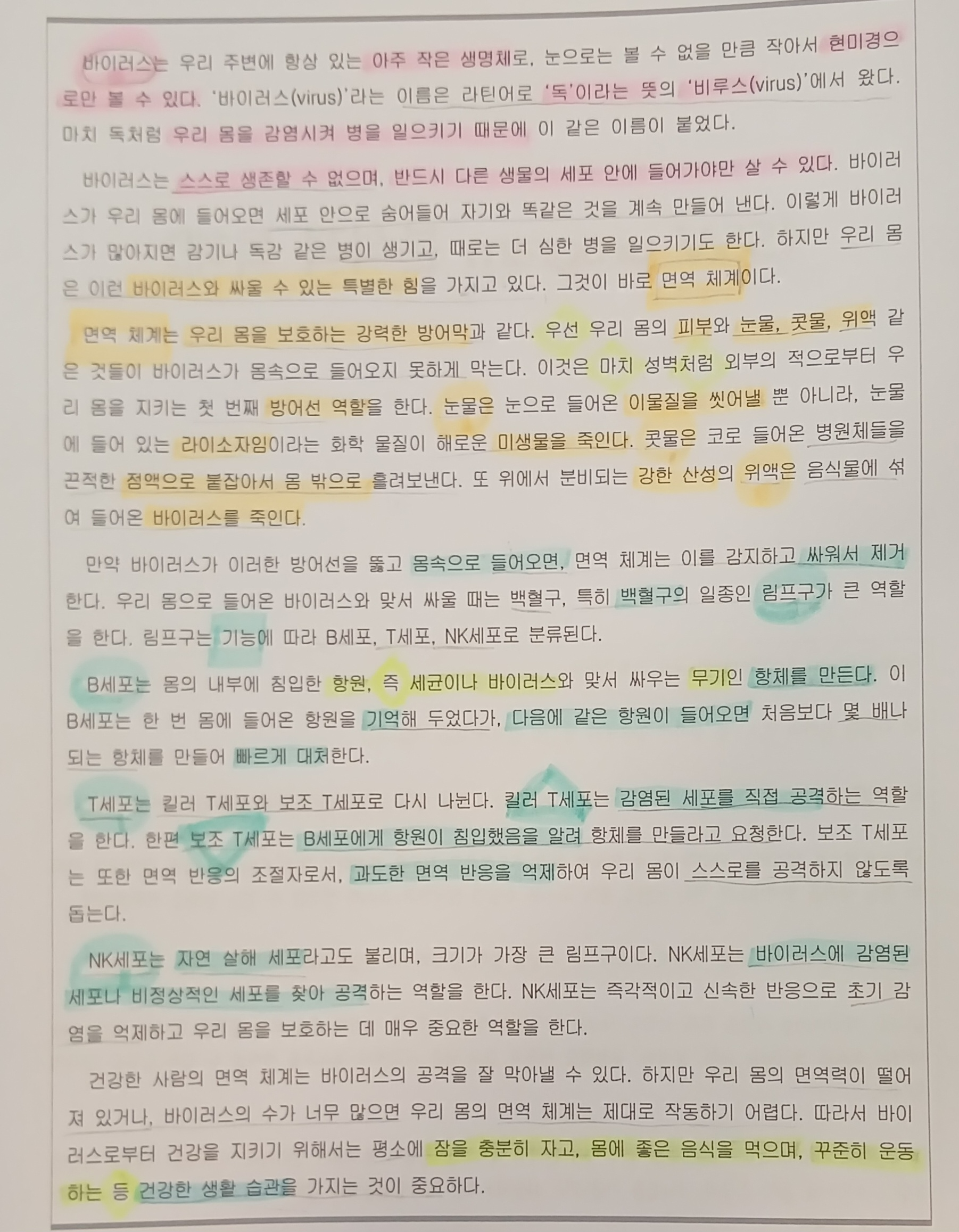 핵심어별로 색깔이 다른 형광펜을 사용하고,