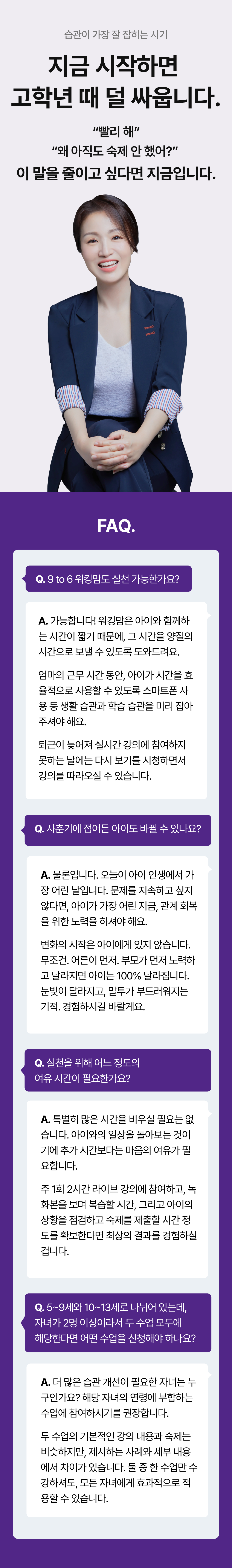 🏠 강의(80분): '마감'이 만드는 힘, 주간 루틴 4블럭 공식, 저학년 학습 동기부여 방법, 아이에게 맞는 학습습관과 환경 조성하기, 자기결정성이론(자율성·유능감·관계성이 움직이게 만든다) 💖 개인 맞춤 피드백(40분)