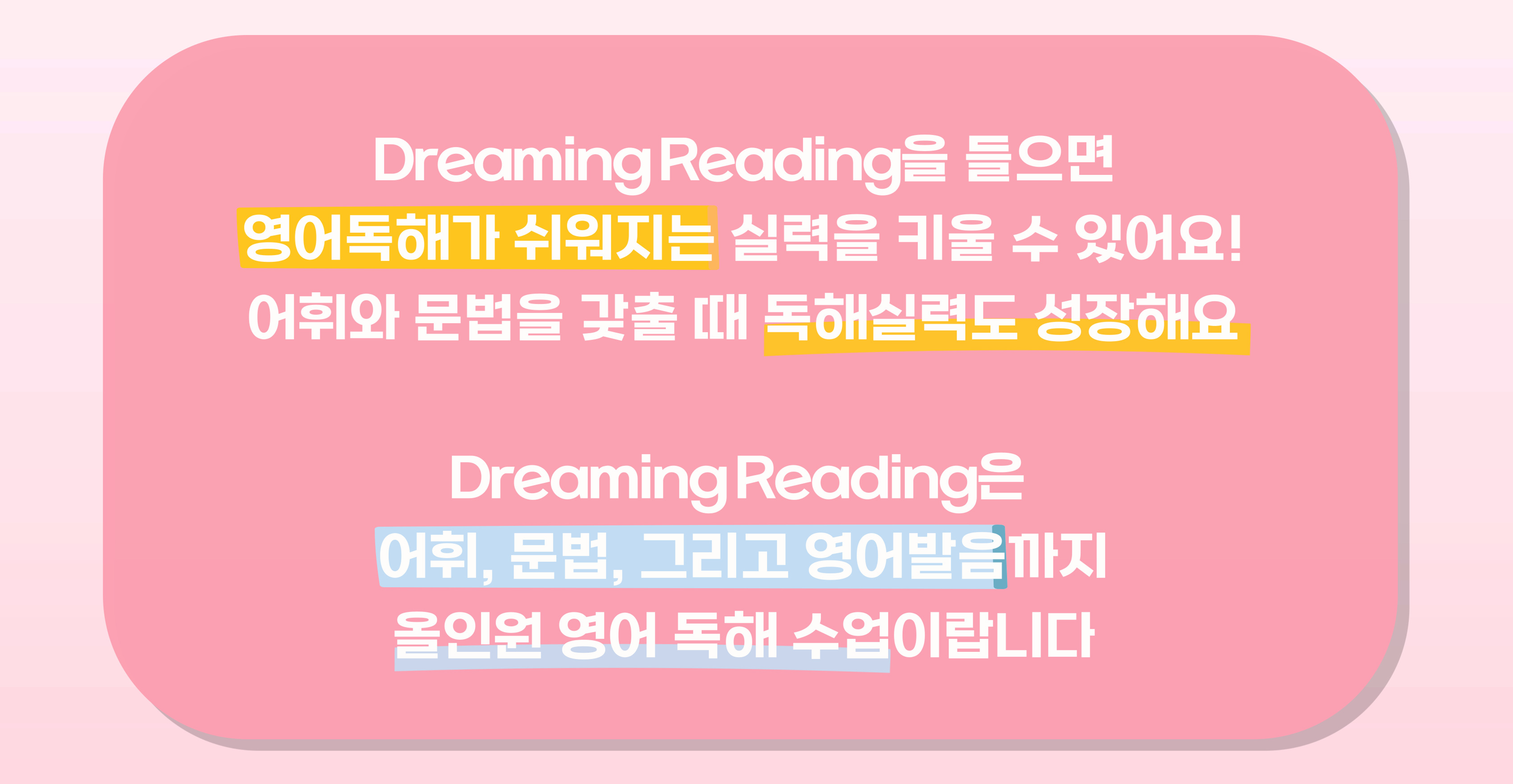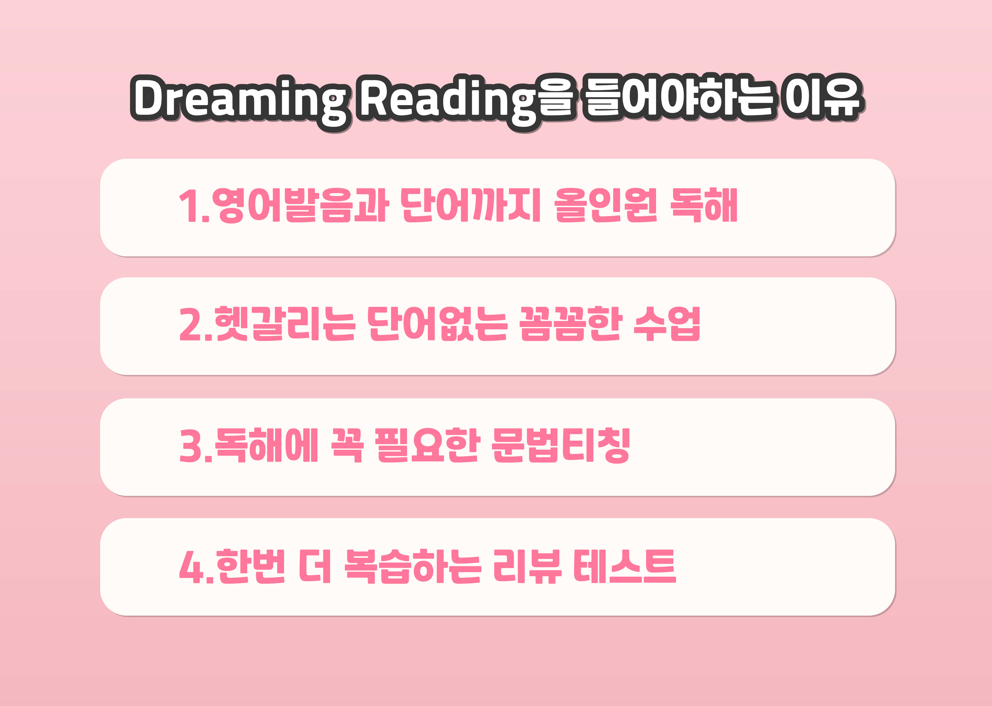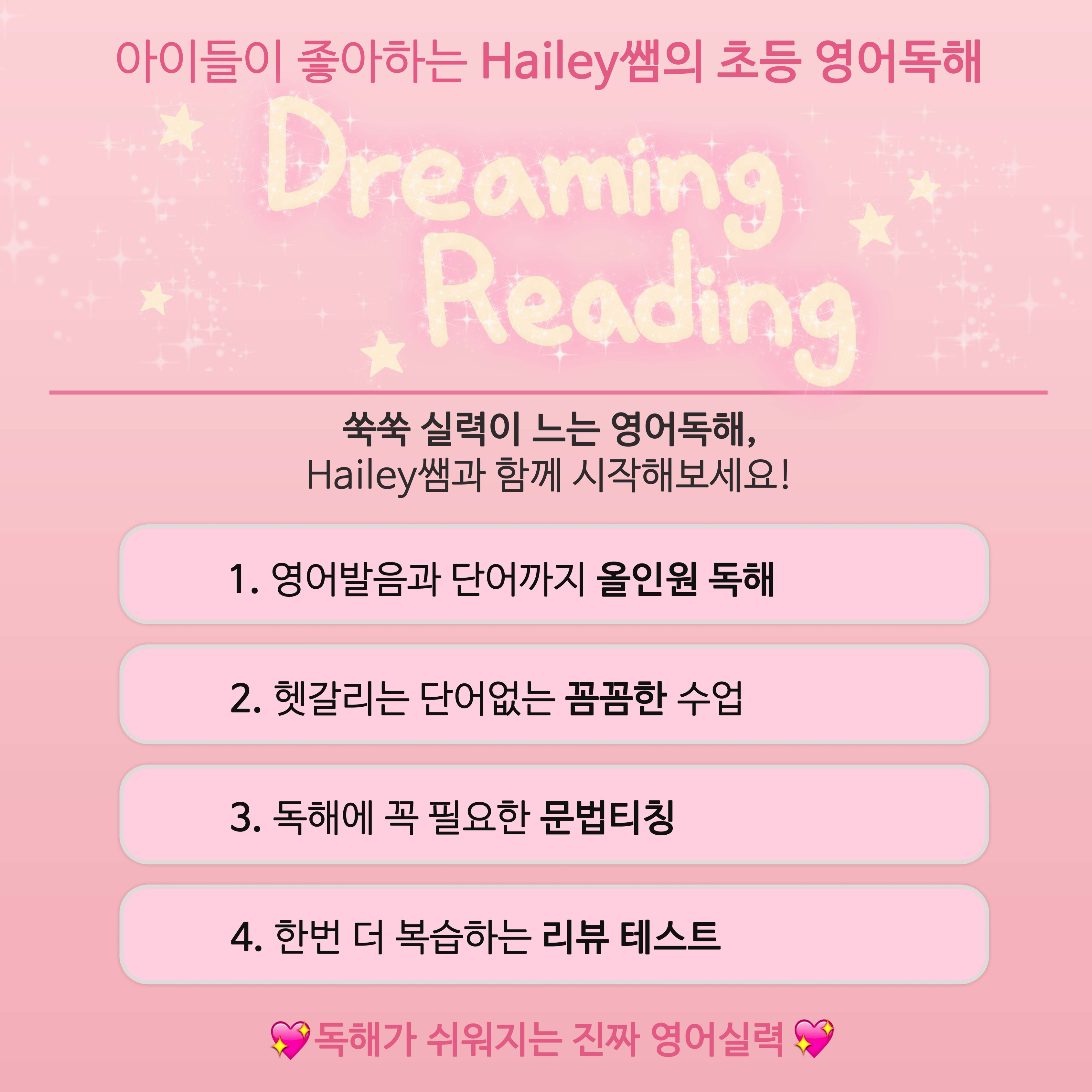 영어발음과 단어까지 올인원 독해 Dreaming Reading~ 헷갈리는 단어없도록 꼼꼼하게, 독해에 꼭 필요한 문법도 배우고 한번 더 복습하는 리뷰테스트까지!