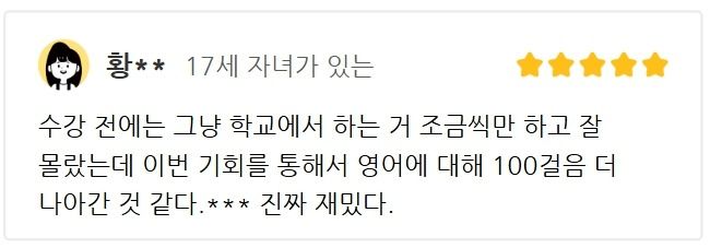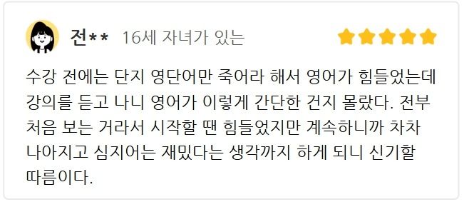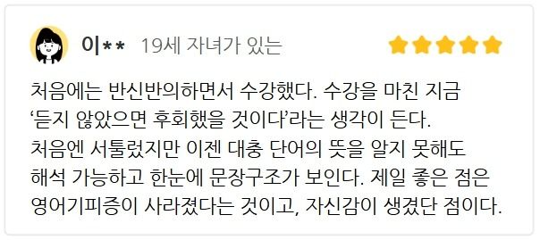 여러 후기들처럼 영어에 자신감이 생길 뿐 아니라
